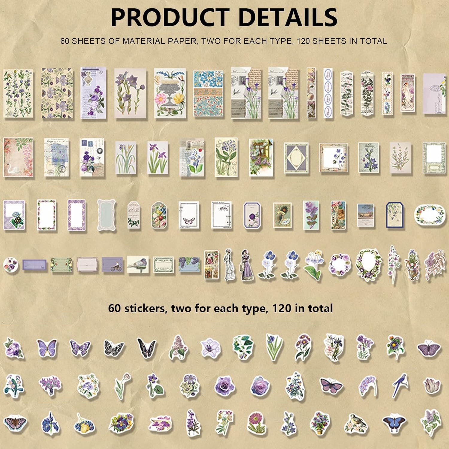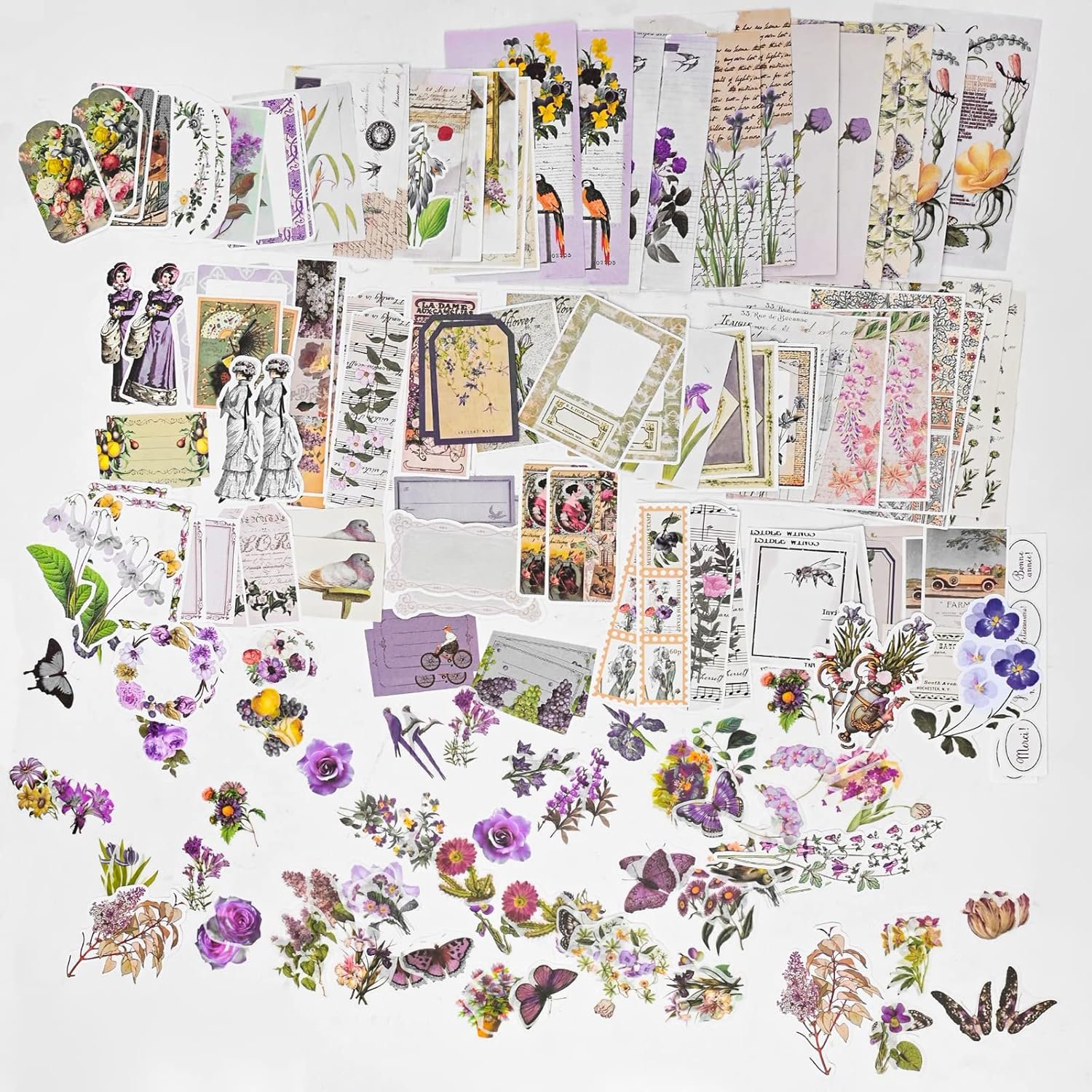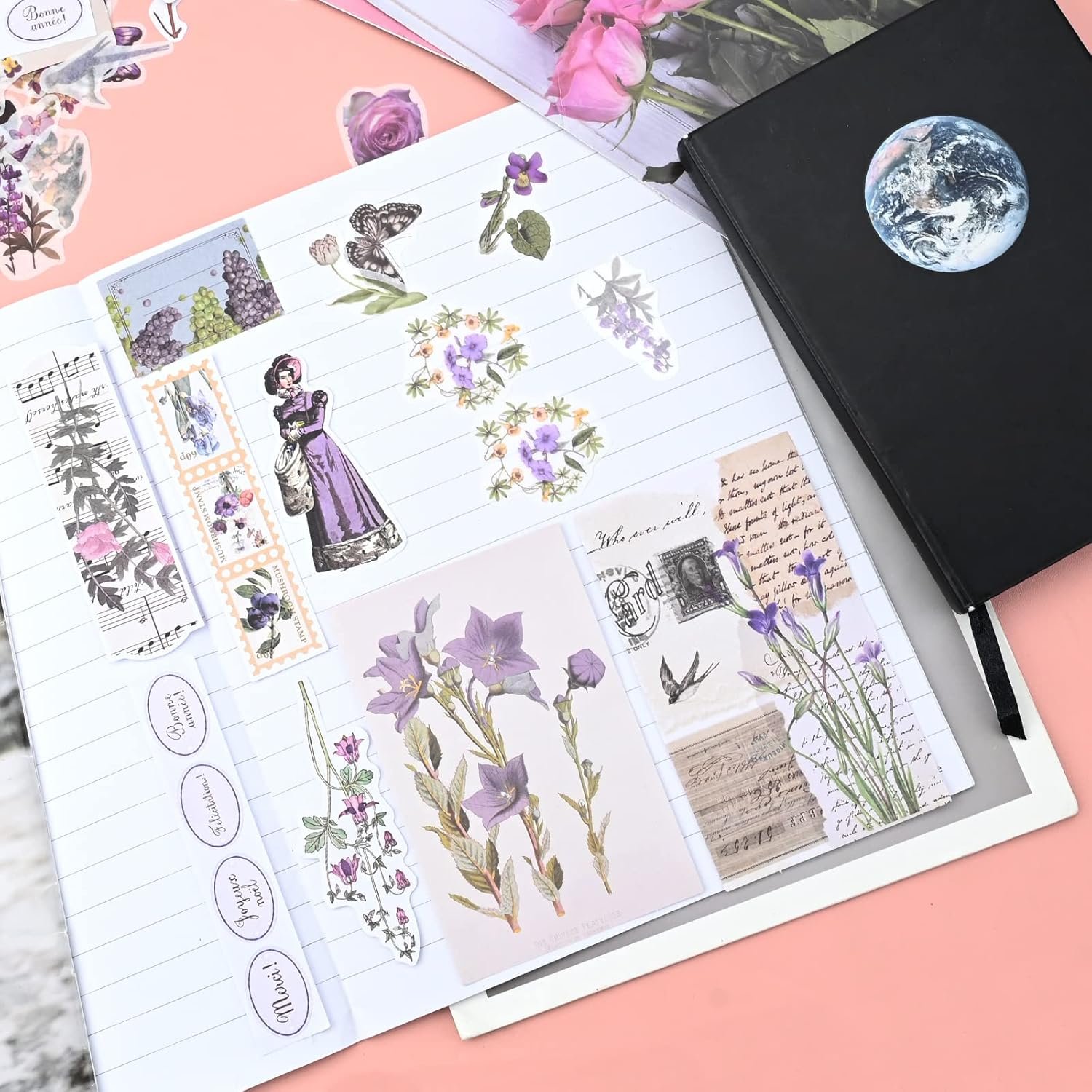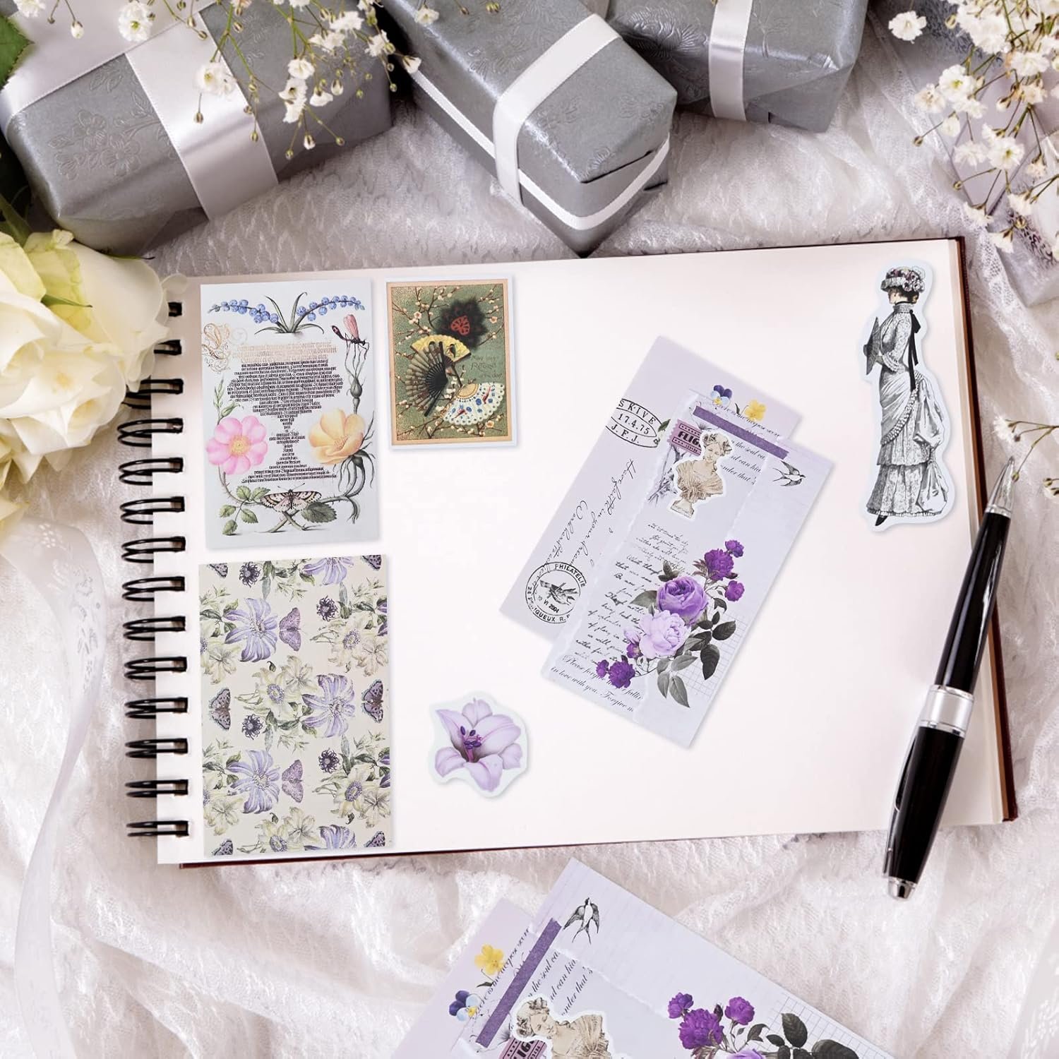 This 200 Pcs Vintage Scrapbooking Sticker Set is perfect for a variety of creative projects. Made from textured paper, these stickers feature vibrant colors and a range of designs including flowers, butterflies, and natural creatures. They are ideal for adding a decorative touch to your journals, albums, and craft projects.