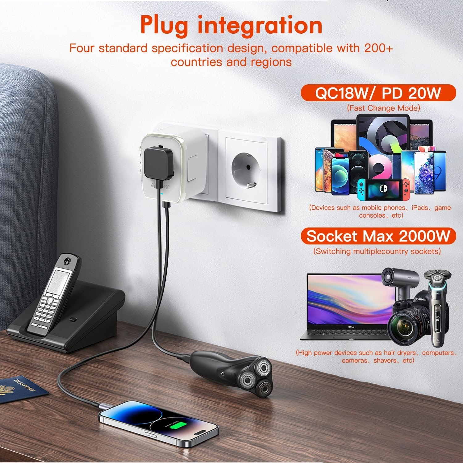 - Compatible with outlets in Europe, UK, US, Australia, and more.