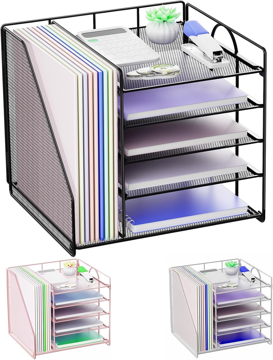 Desk Organizers, 5-Tier Paper Letter Tray Organizer with File Holder, Mesh File Organizer, Desktop Organizers and Storage for Desk Accessories Office Supplies, Black
