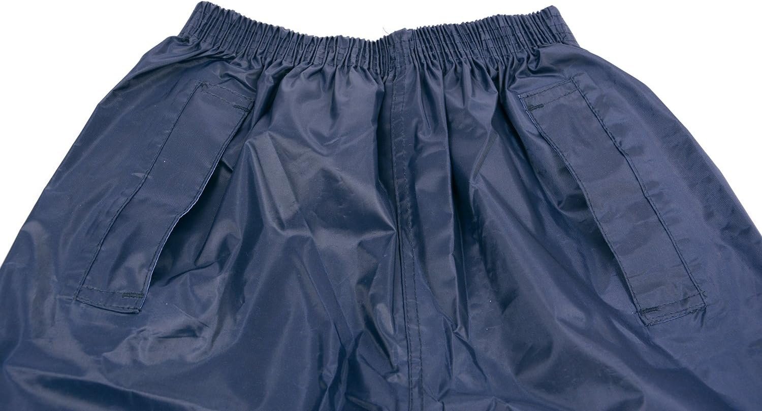 The DRY KIDS Children's Waterproof Over Trousers are designed for outdoor play in wet weather. Made from lightweight polyester, these trousers are waterproof tested to 4000mm of hydrostatic head, ensuring your child stays dry. The hardwearing fabric is complemented by taped seams, making them fully sealed against rain. Key features include an elastic waist for comfort, poppers at the ankle for a secure fit, and openings for easy access to trouser pockets. Available in various sizes from 2 years to 14 years, these trousers cater to a wide range of children. They come in multiple colors, allowing kids to choose their favorite. Perfect for outdoor adventures regardless of the weather, these trousers are a practical addition to any child's wardrobe.