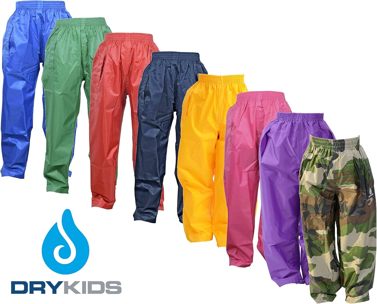 DRY KIDS Childrens Waterproof Over Trousers. Boys and Girls Rainwear for Outdoor Play