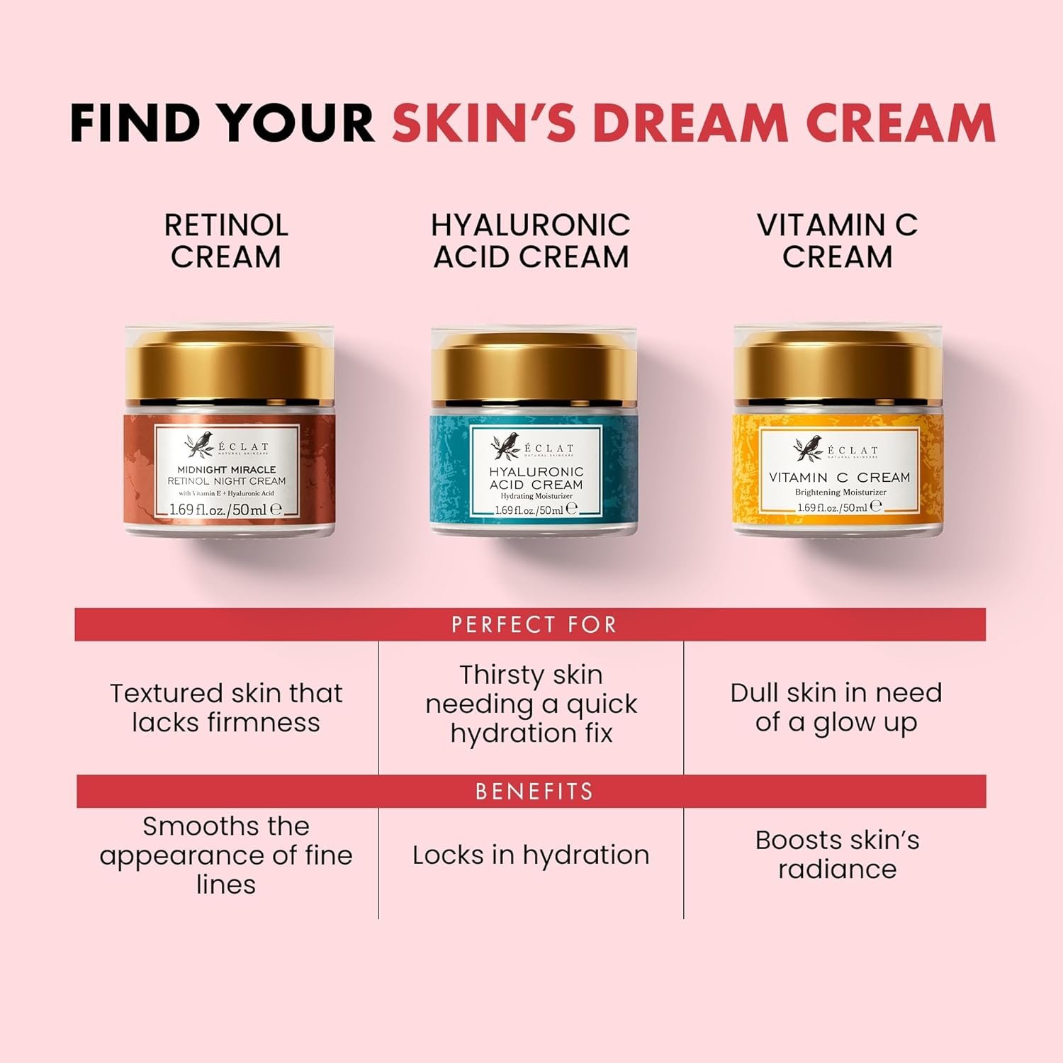 The Eclat Skincare Retinol Night Cream is designed to help reduce the appearance of wrinkles and fine lines while providing hydration. This advanced retinol cream is suitable for both women and men, making it a versatile addition to any skincare routine.