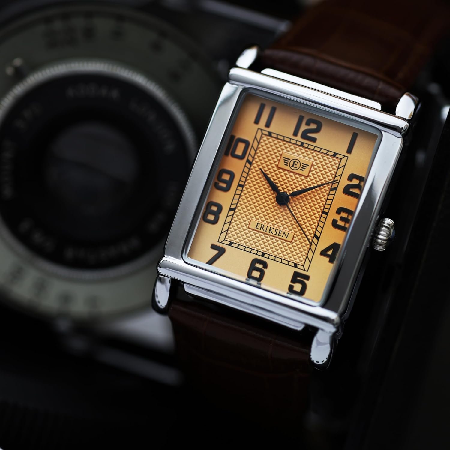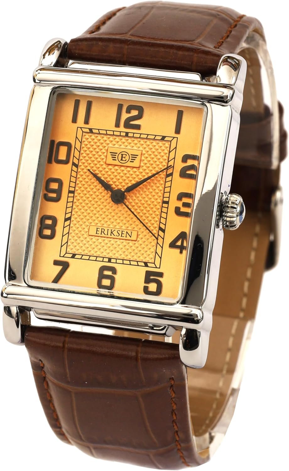 The ERIKSEN Men's Vintage Retro Rectangular Leather Strap Analog Watch is a blend of classic design and modern functionality. Crafted with precision, this watch features a soft grain padded genuine leather strap, ensuring comfort during wear. The Japanese movement guarantees accurate timekeeping, making it a reliable companion for daily use. With scratch-resistant hardened mineral glass, it withstands the rigors of everyday life.