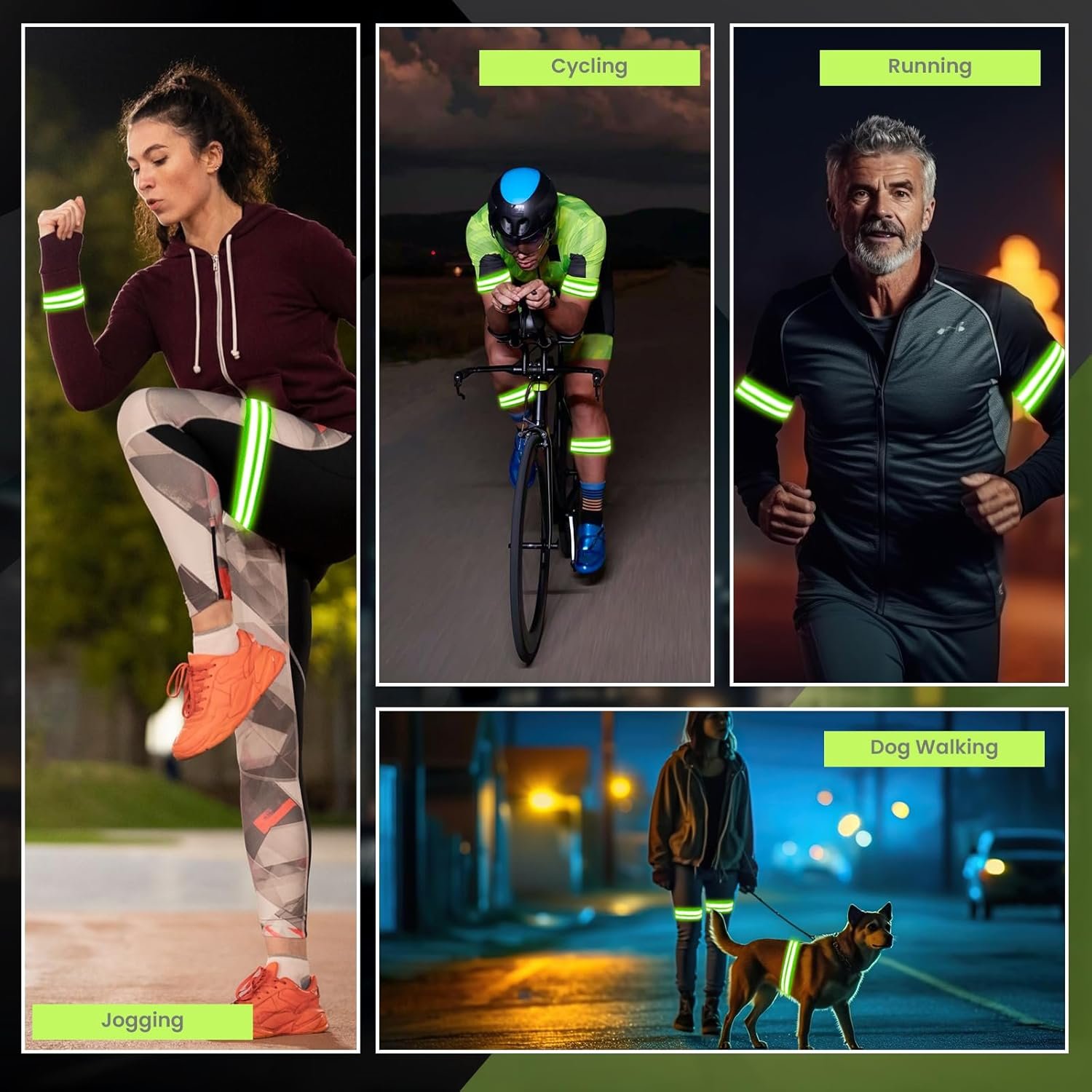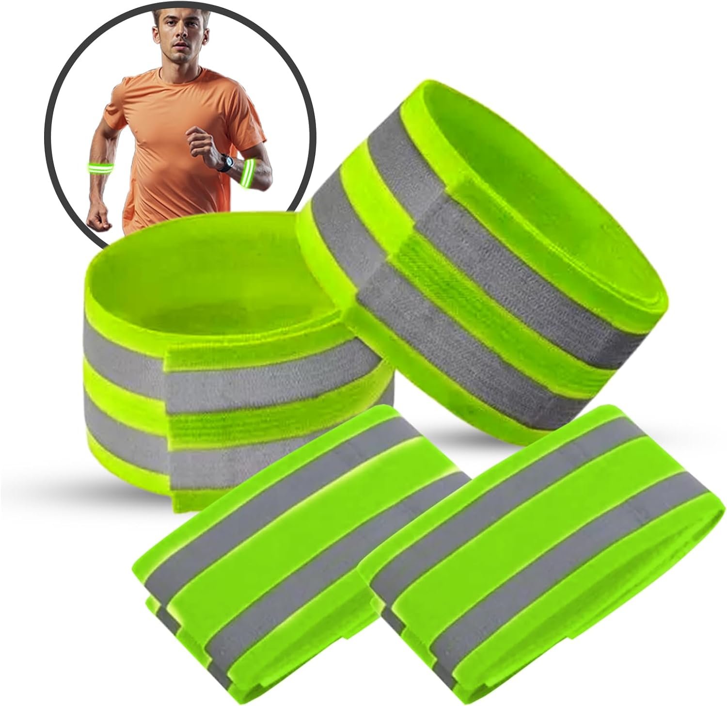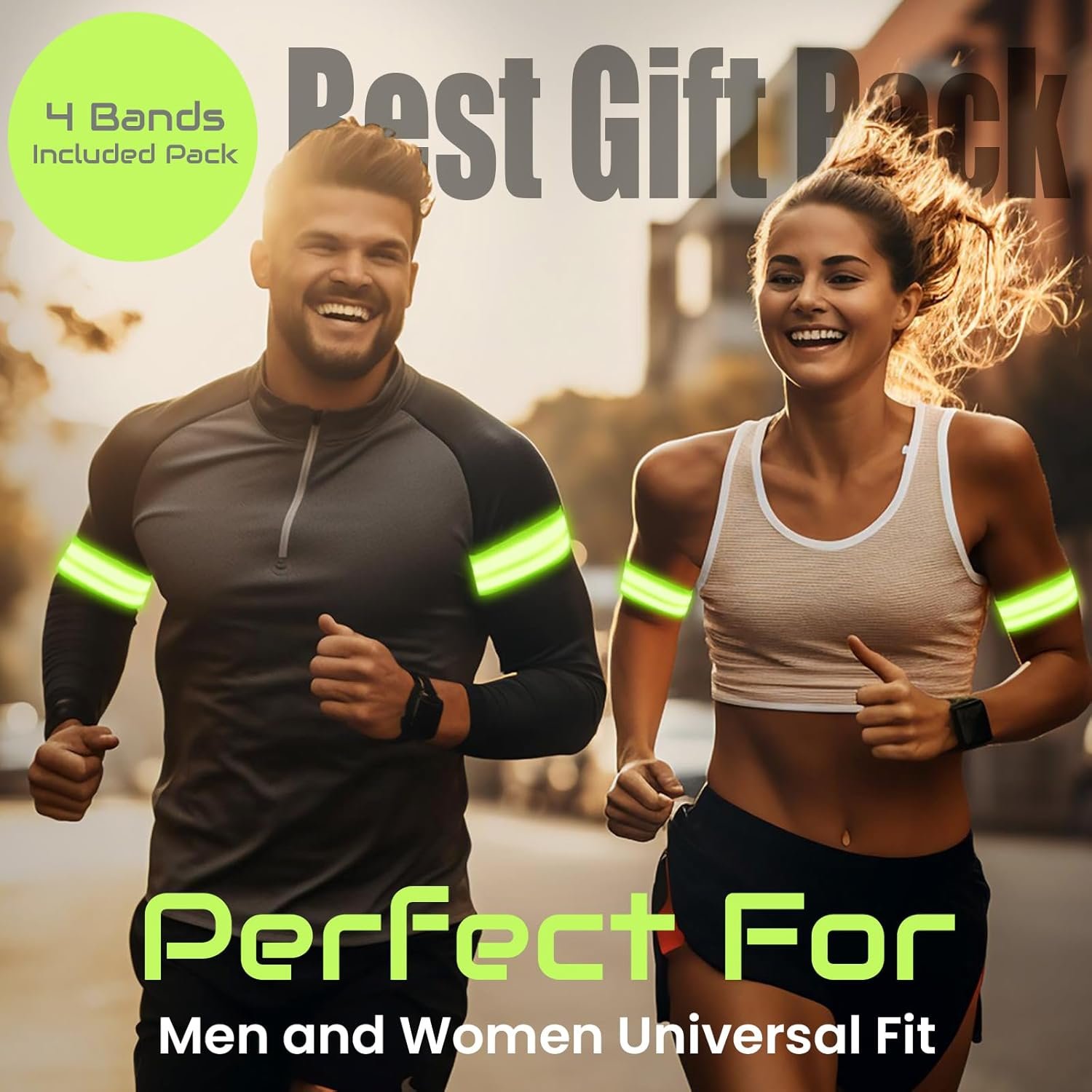 Four Reflective Running Armbands Hi Vis, High Visibility Arm Bands & Ankle Bands, Reflective Running Gear Adjustable Length, Reflective Band For Cycling, Walking, Running Accessories For Men & Women