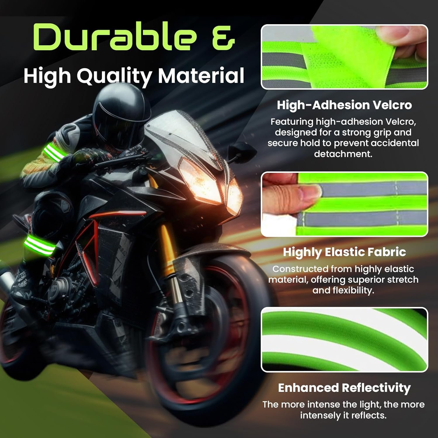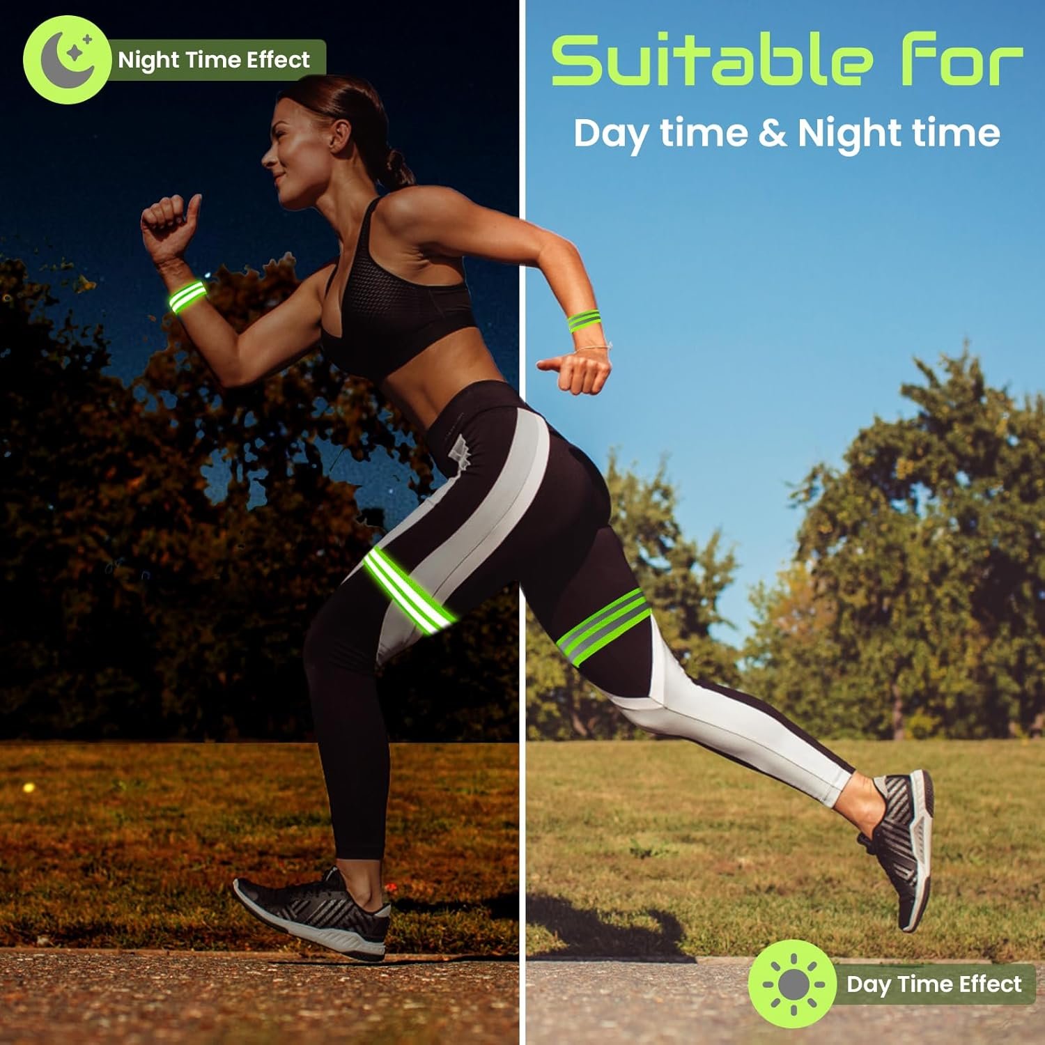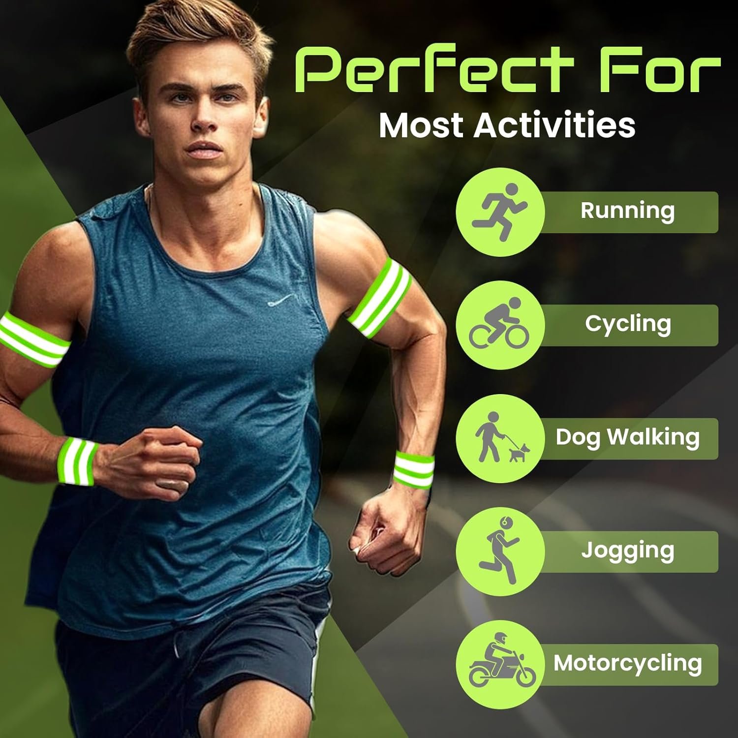 Four Reflective Running Armbands Hi Vis, High Visibility Arm Bands & Ankle Bands, Reflective Running Gear Adjustable Length, Reflective Band For Cycling, Walking, Running Accessories For Men & Women
