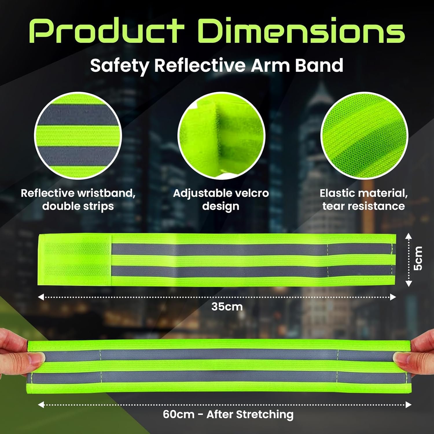 The Four Reflective Running Armbands are designed to enhance visibility during low-light conditions. These bands are suitable for both adults and children, making them versatile for various activities. The bright green color ensures you stand out while jogging, cycling, or walking. Each packet includes four adjustable bands that can be worn on arms or ankles.