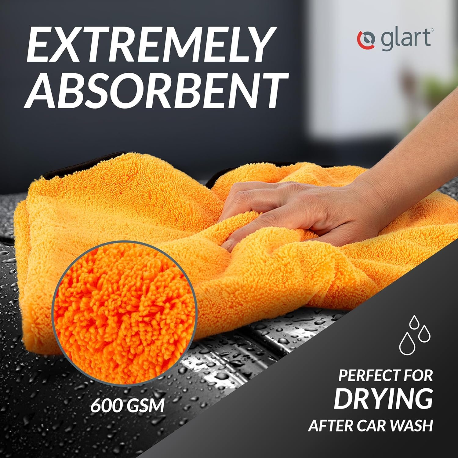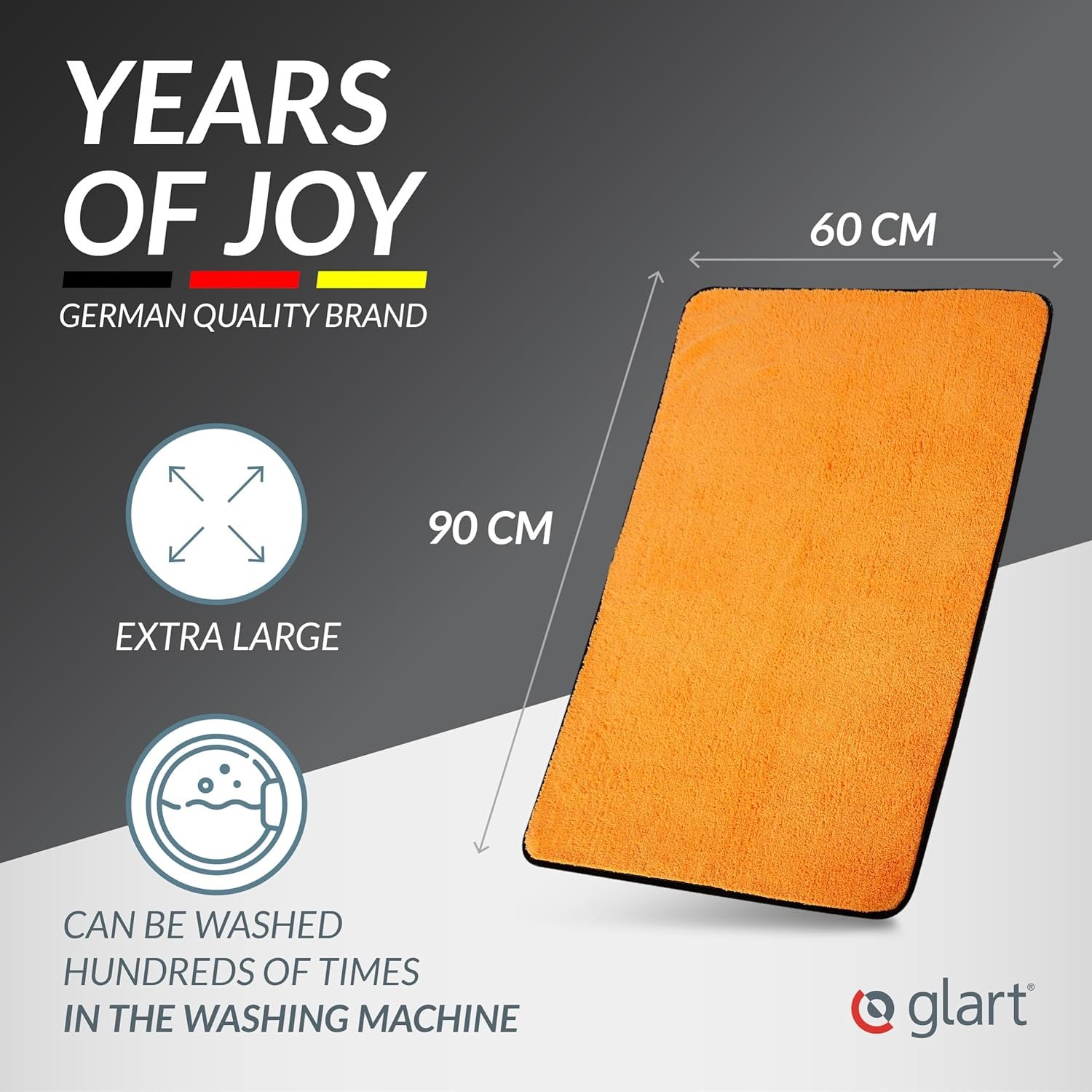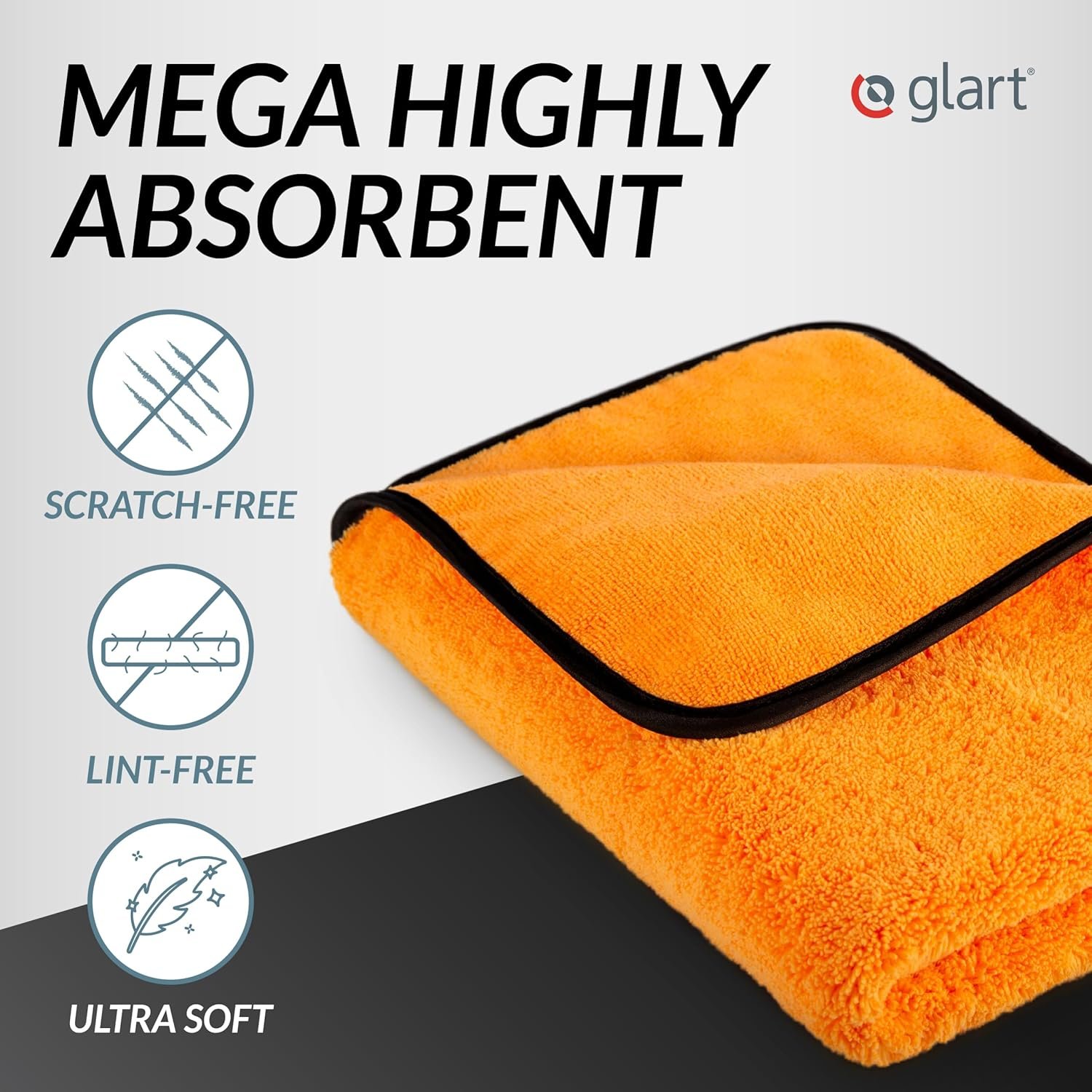 Glart 44WG Car Drying Towel XXL 90×60 cm – Microfiber Polishing Cloth Orange – Large Absorbent and Cleaning Cloth for Car, Motorcycle, Boat, Household – Soft, Paint-Friendly, Lint-Free