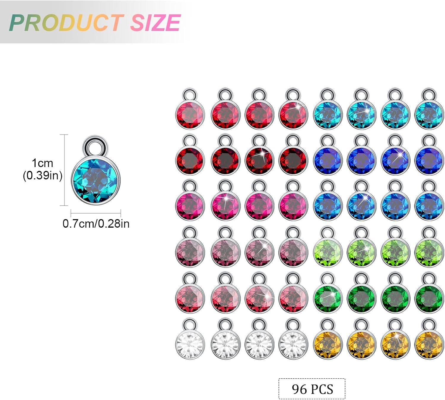 Gukasxi 96 Pieces Crystal Birthstone Charms Necklace Earring Bracelet Beads Pendants with Rings for DIY Jewelry Making and Crafting, 12 Colors …