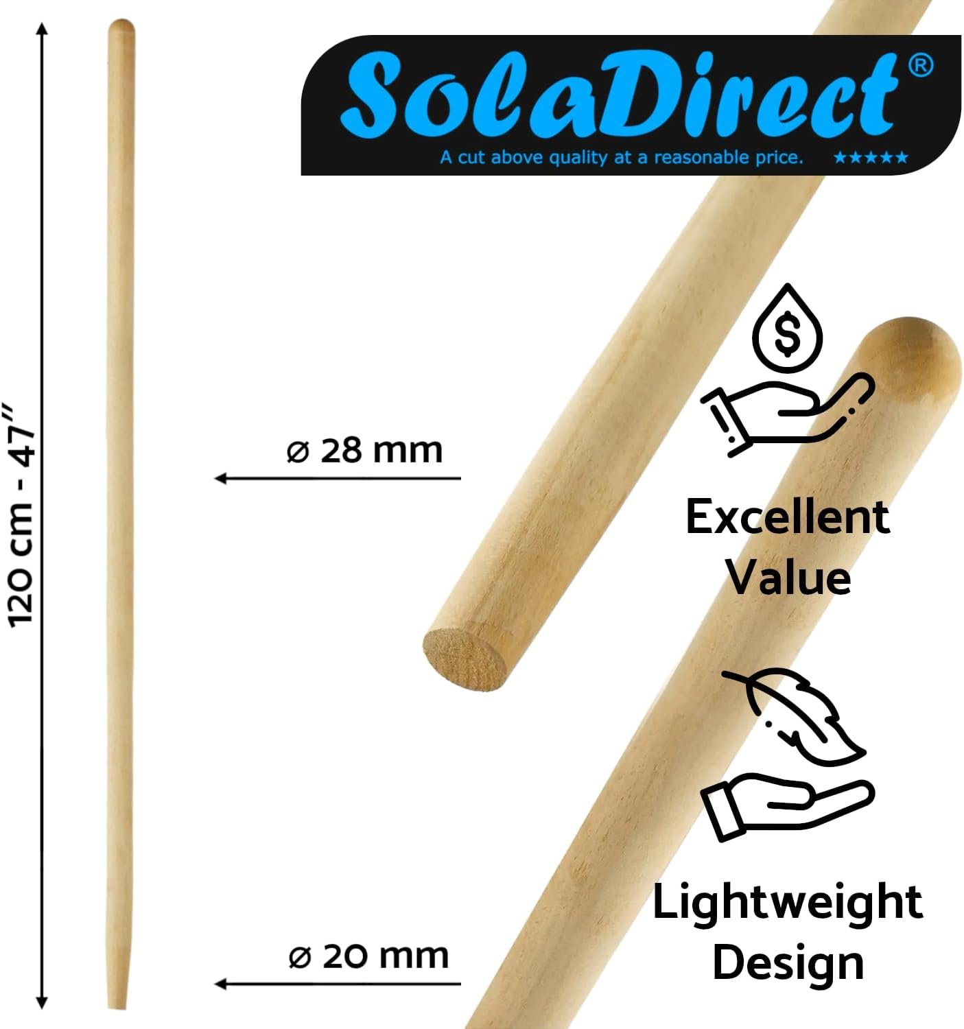 The Hardwood Rake Handle Replacement is a versatile 120 cm (47") long wooden shaft designed for various garden and landscaping tools. It features a tapered end that fits securely into standard rake, hoe, broom, shovel, spade, and fork heads. This ensures compatibility with most gardening and construction tools.