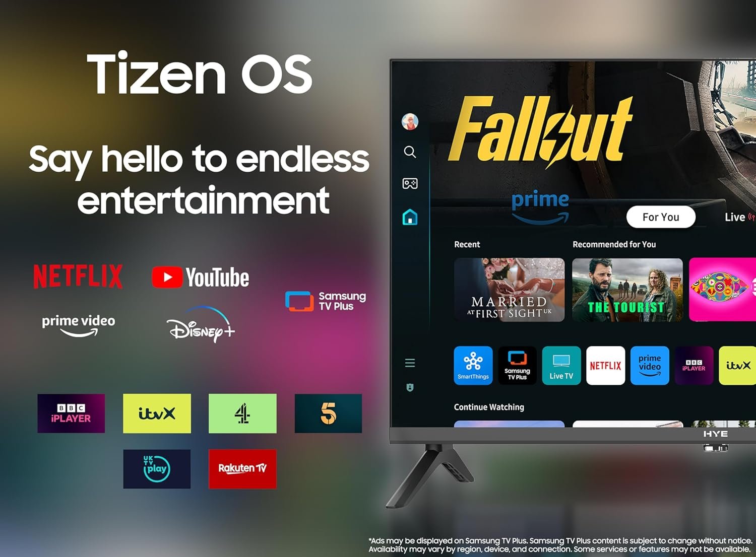 HYE TV – Smart TV, 24″ Screen Size, HD Ready Resolution, Samsung Tizen OS & Gaming Hub, Versatile Connectivity, Black, Perfect For Streaming, Gaming & Entertainment – 24HDS1008