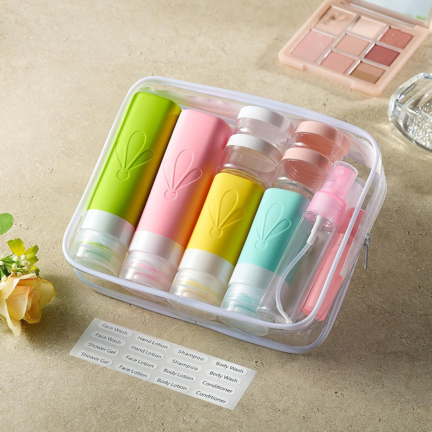 INSFIT 17 Pack Silicone Travel Bottles Set – CAA Compliant Leakproof Toiletries Containers, Reusable Travel Size Accessories for Women & Men, Airplane Essentials, Shampoo Lotion Organizer