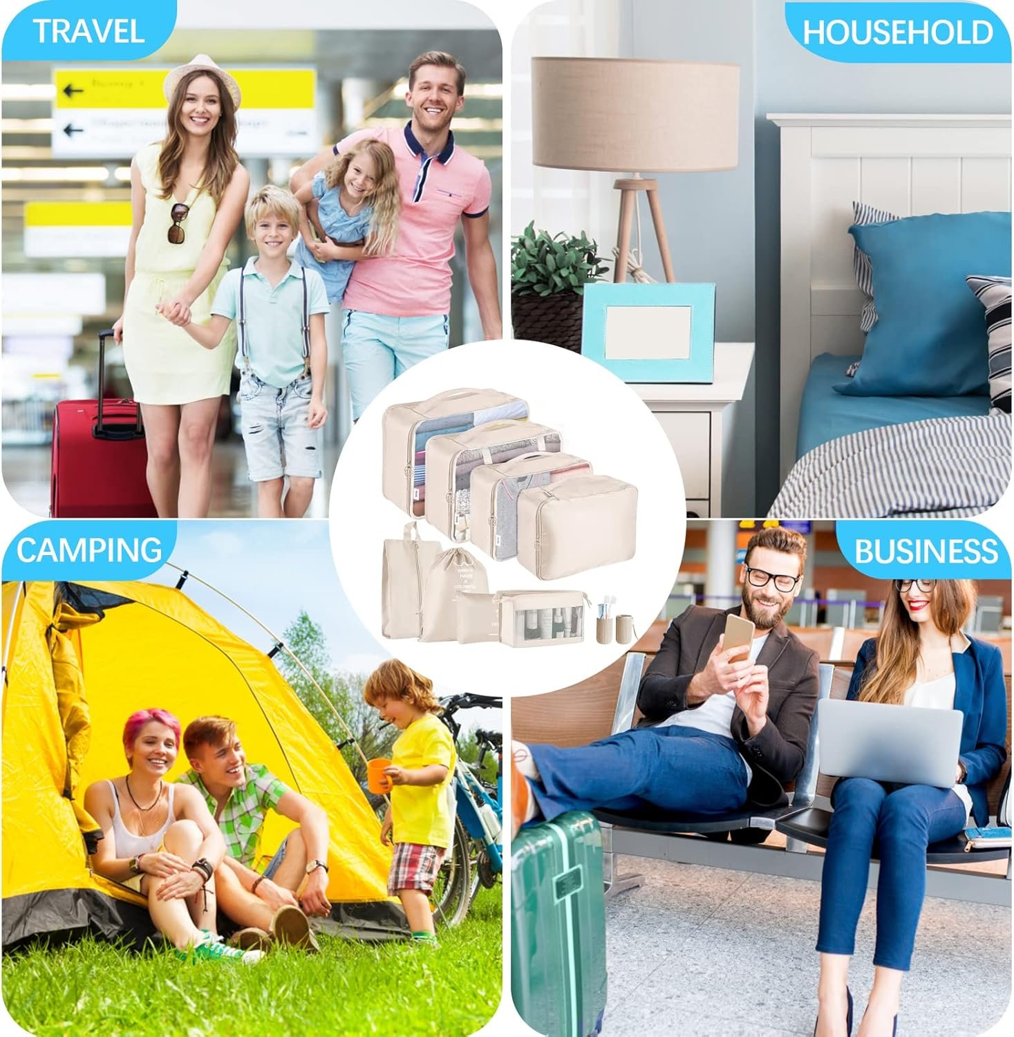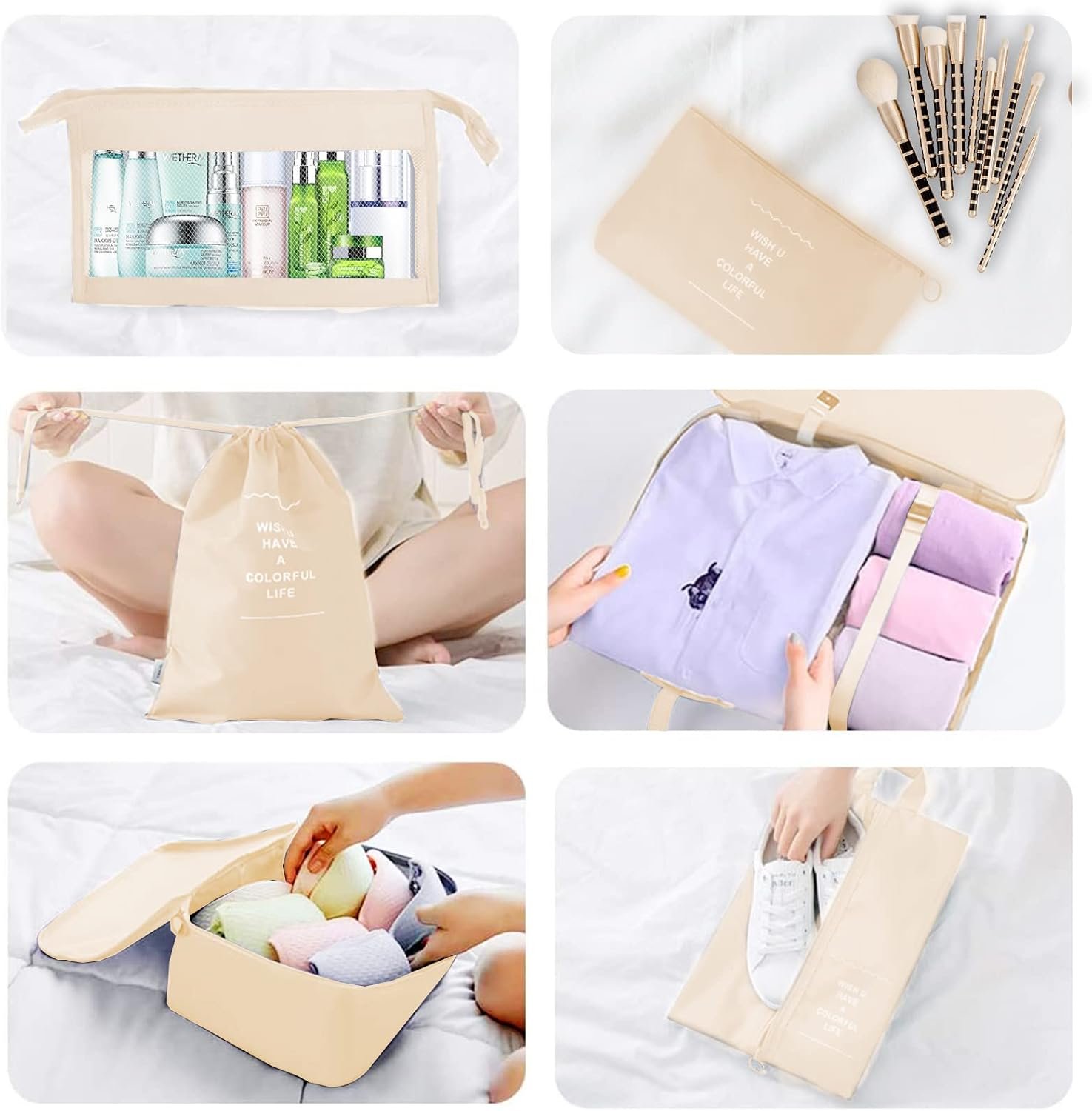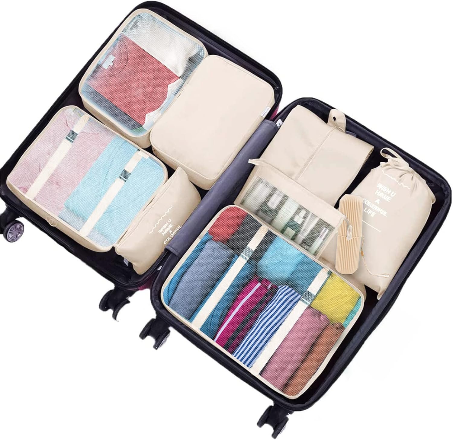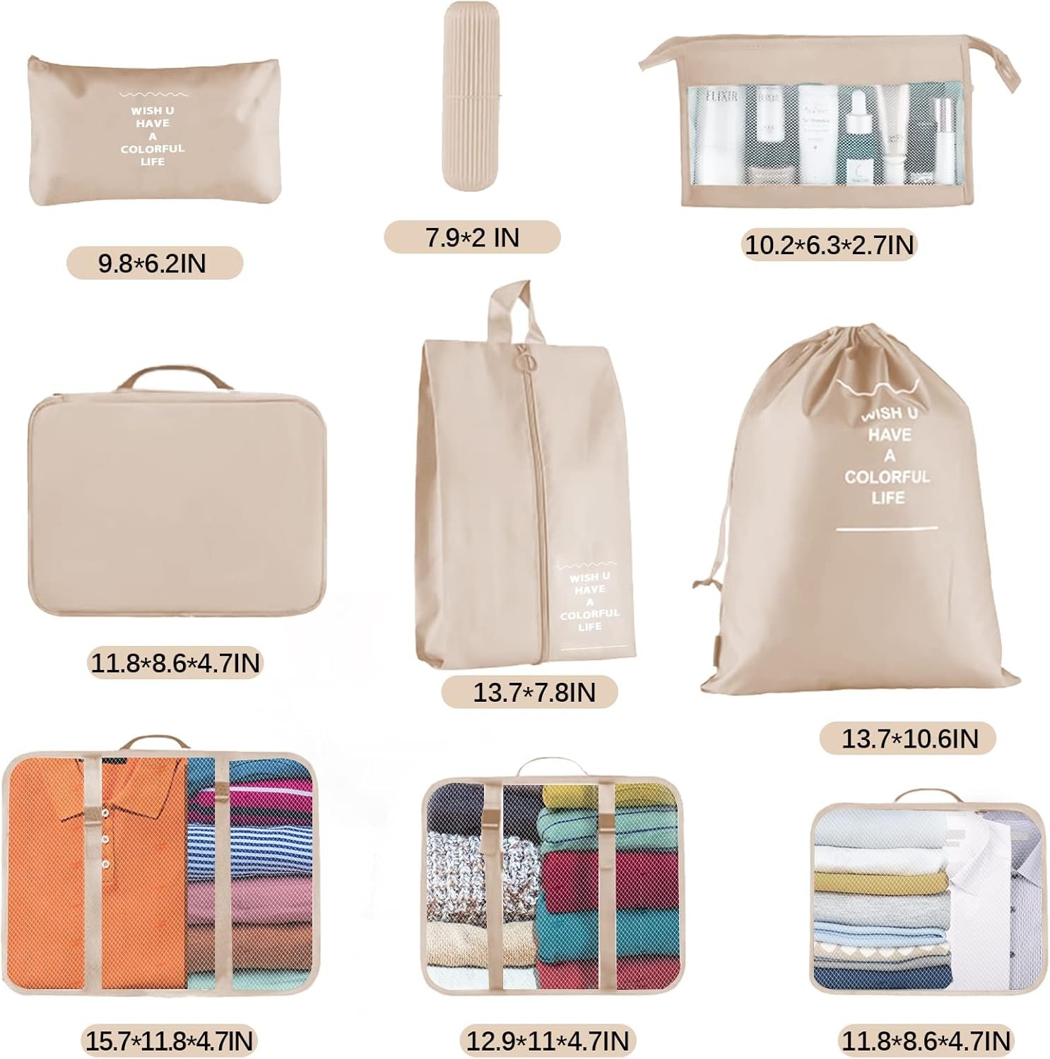 Jsdoin Packing Cubes for Suitcase,9 PCS Travel Luggage Packing Cubes for Backpack, Waterproof Essentials Suitcase Organiser Bags, Travel Accessories (Beige)