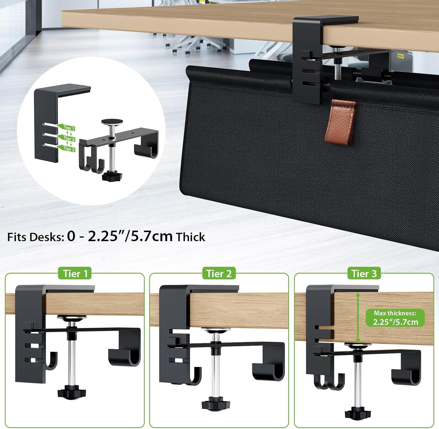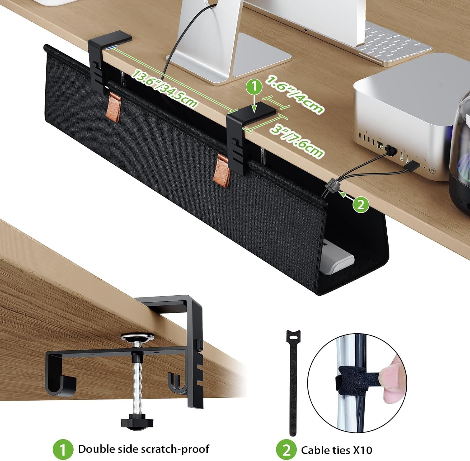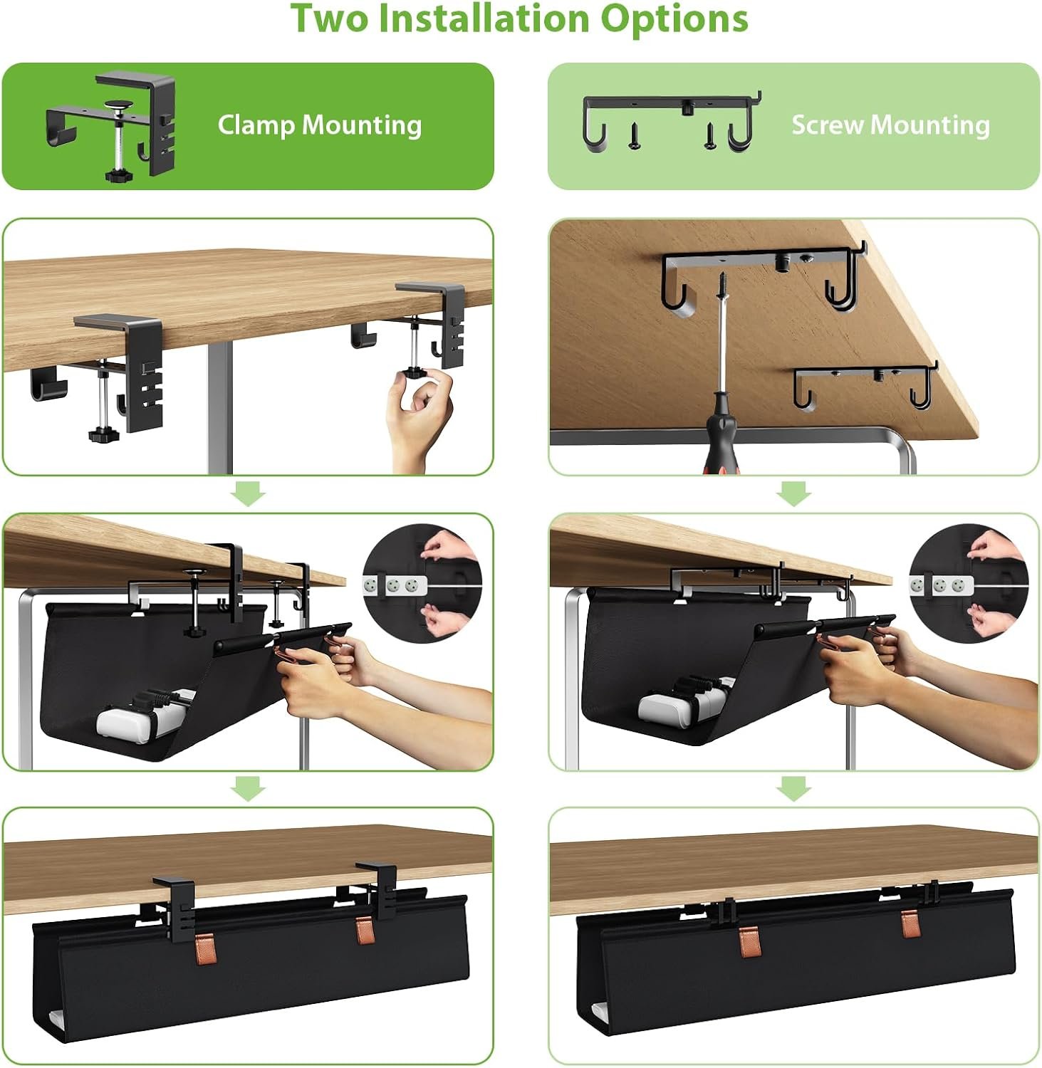 The KEEGH Under Desk Cable Management Tray is designed to keep your workspace organized and free from clutter. Measuring 30 inches, this tray is suitable for various desk types and can be installed using clamps or screws, ensuring a secure fit. The premium fabric material helps to conceal wires effectively, making it an excellent choice for both home and office environments.