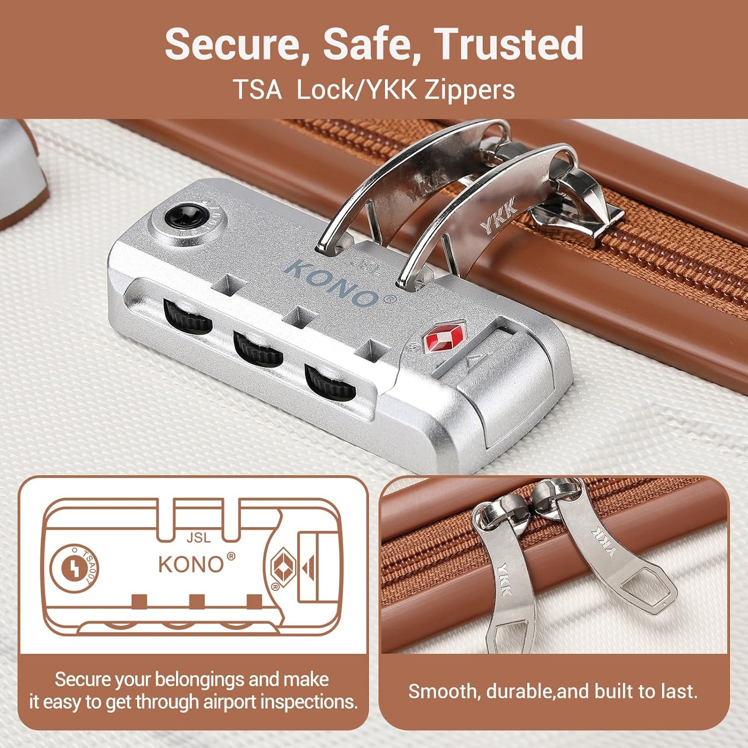 - TSA combination lock enhances security