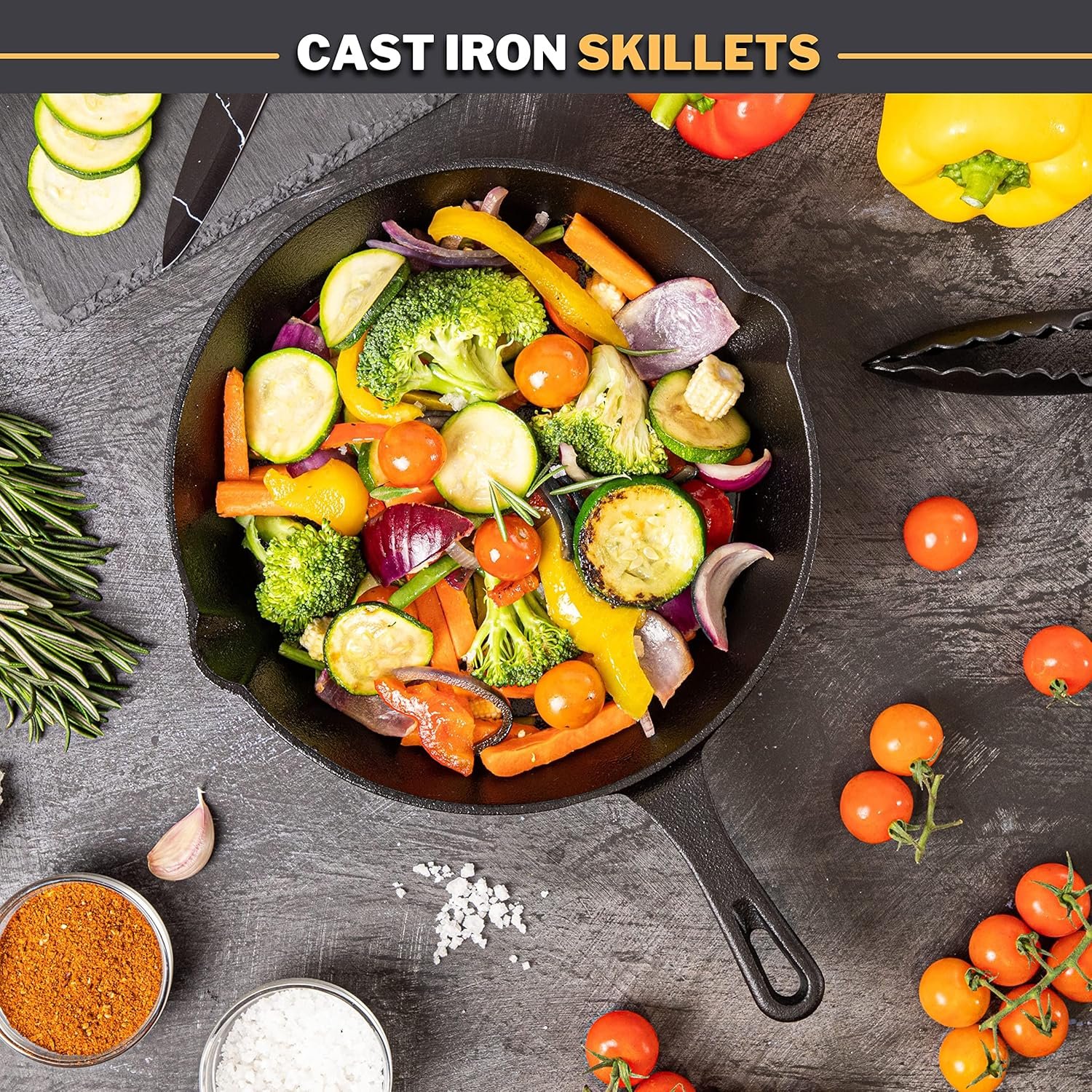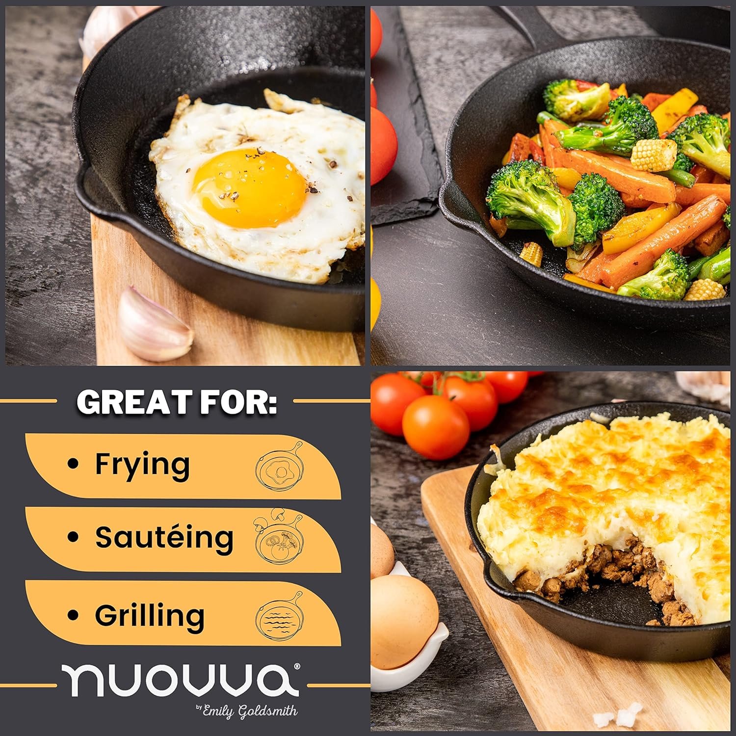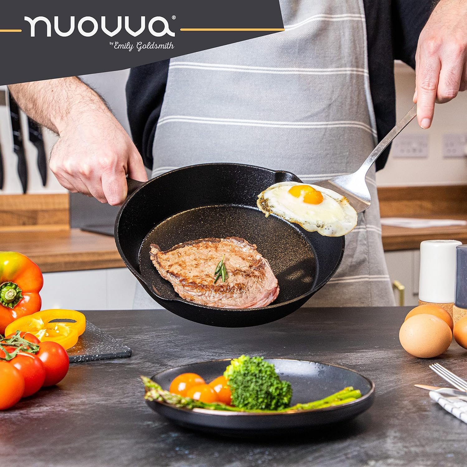 nuovva Pre-Seasoned Cast Iron Skillet Frying Pan Oven Safe Cookware for Indoor & Outdoor Use – Grill, StoveTop, Black (10inch – 25cm)