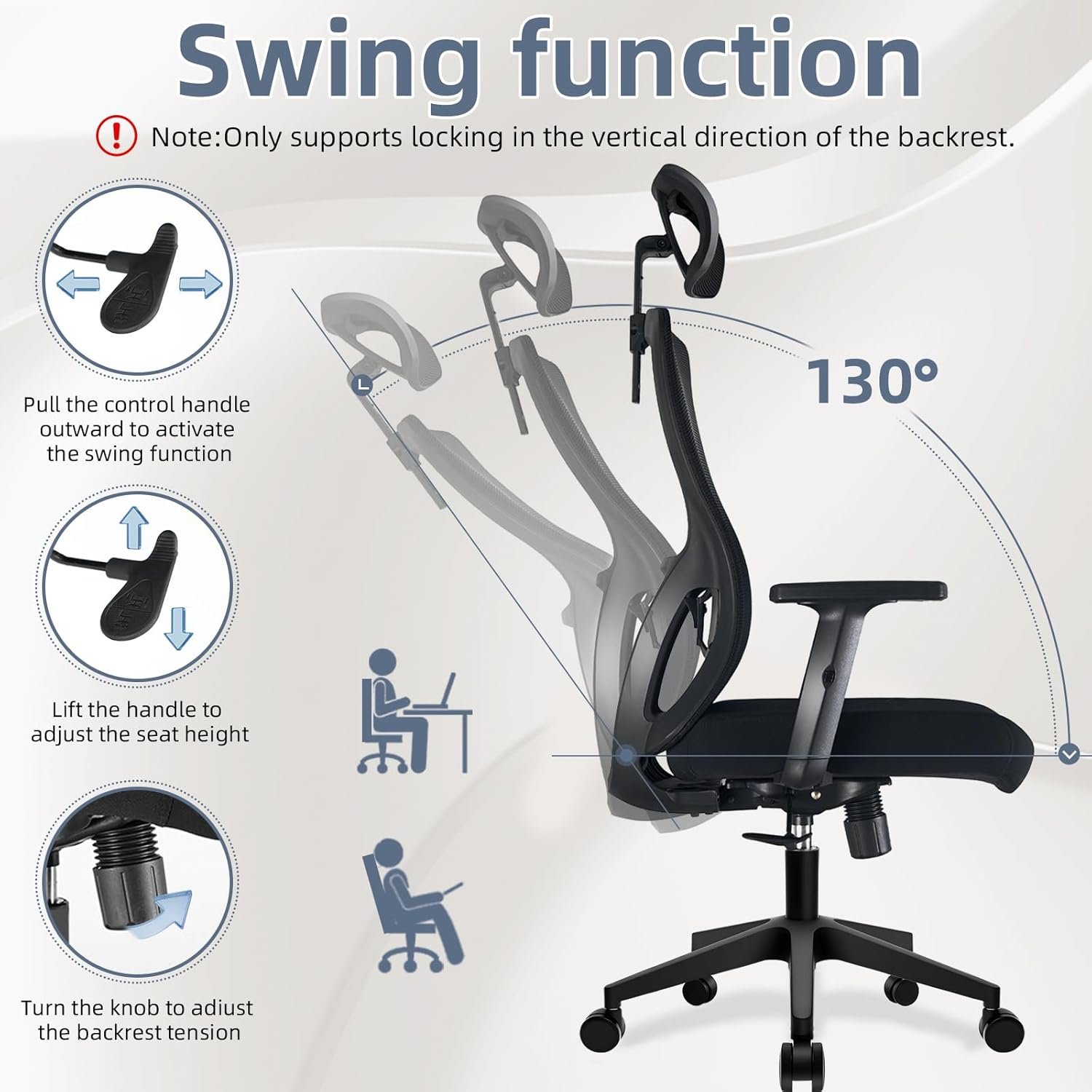 Office Chair, Desk Chair with Adjustable Headrest, Lumbar support and Liftable Armrest, High Back Ergonomic Office Chair, Breathable Mesh Backrest for Comfy, Computer Chair for Home/Office