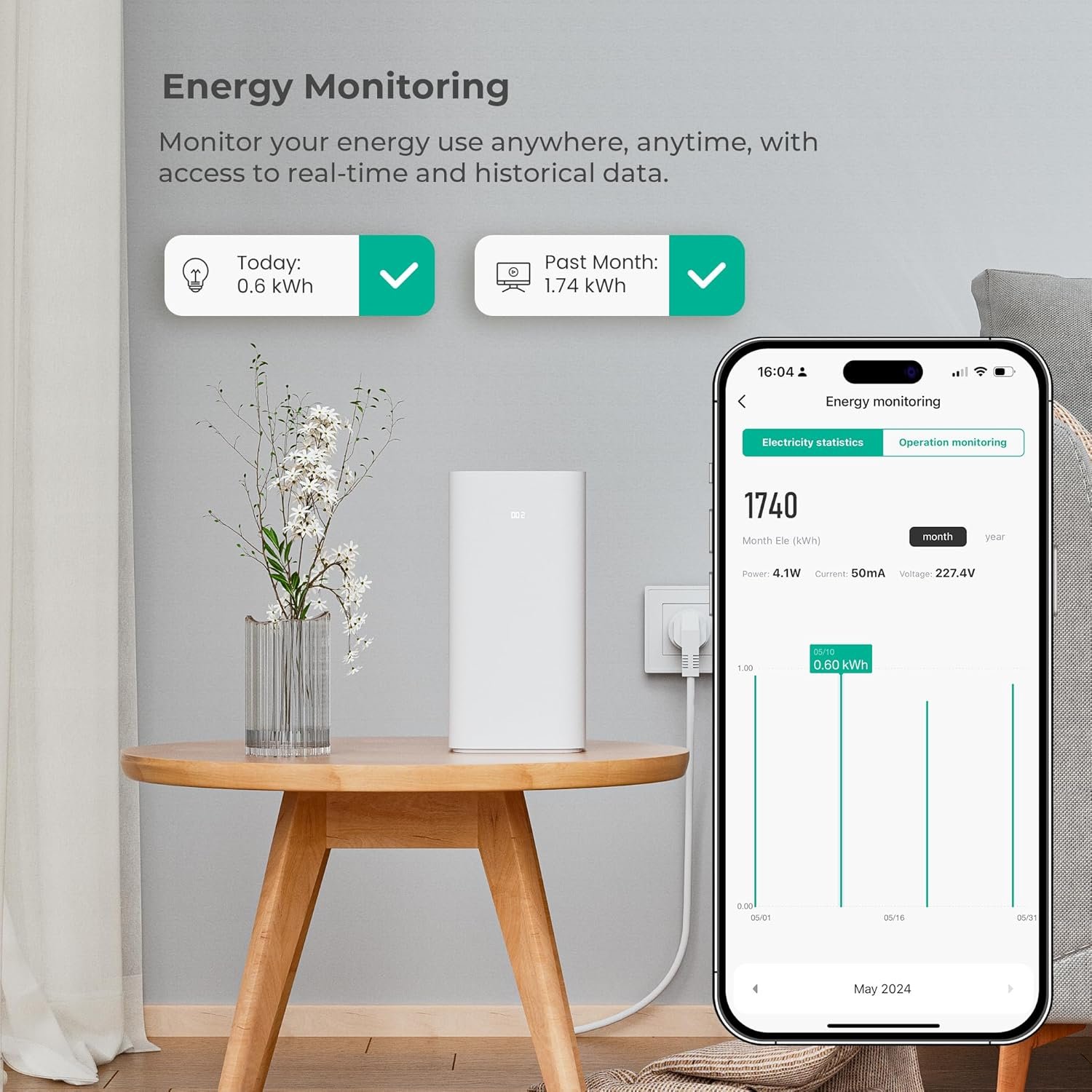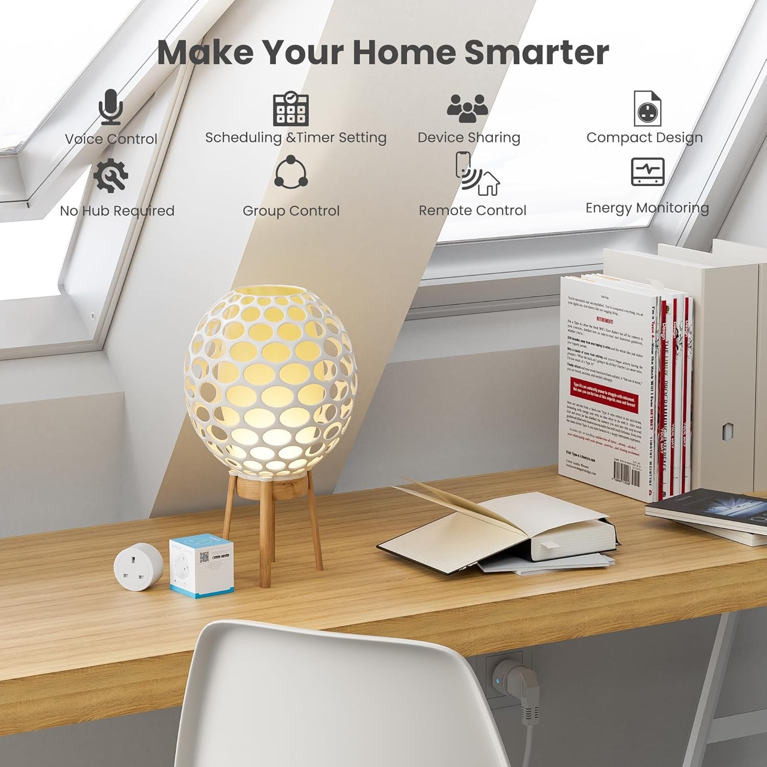 Smart Plug Wi-Fi Outlet, Works with Alexa & Google Home, Wireless Smart Socket with Energy Monitoring, Timer & App Remote Control, Device Sharing, 2.4GHz Wi-Fi Only, 13A (1 Pack)