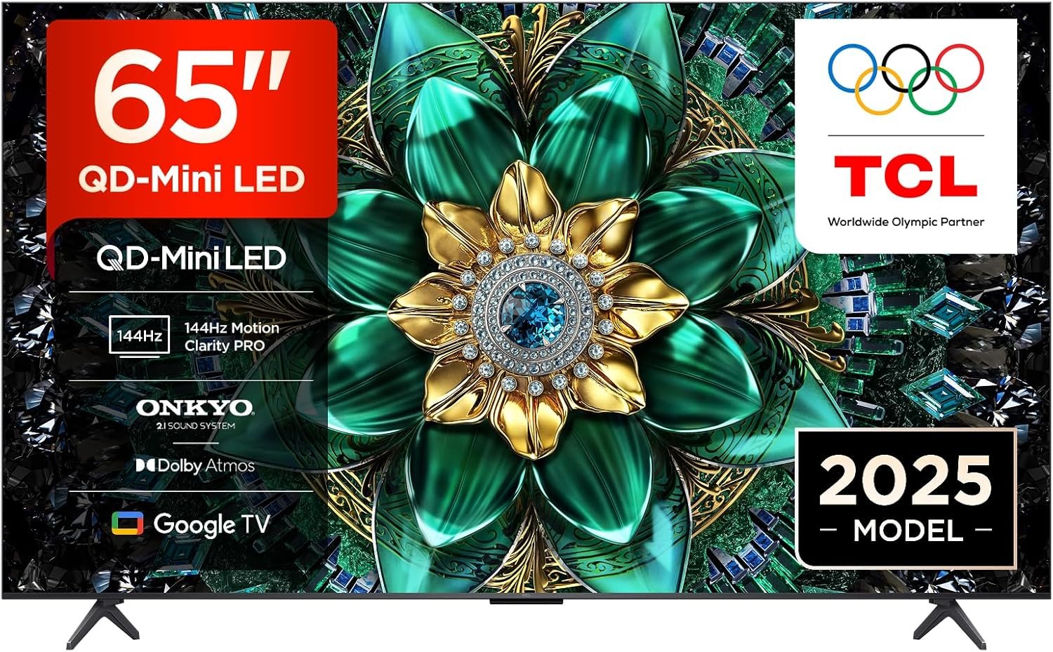 TCL 65Q6C-UK QD-Mini LED TV, 4K HDR Premium 1000nits, Smart TV Powered by Google TV (Dolby Vision IQ & Atmos, Onkyo 2.1 Sound System, 144Hz Motion Clarity Pro, 2025 Model)
