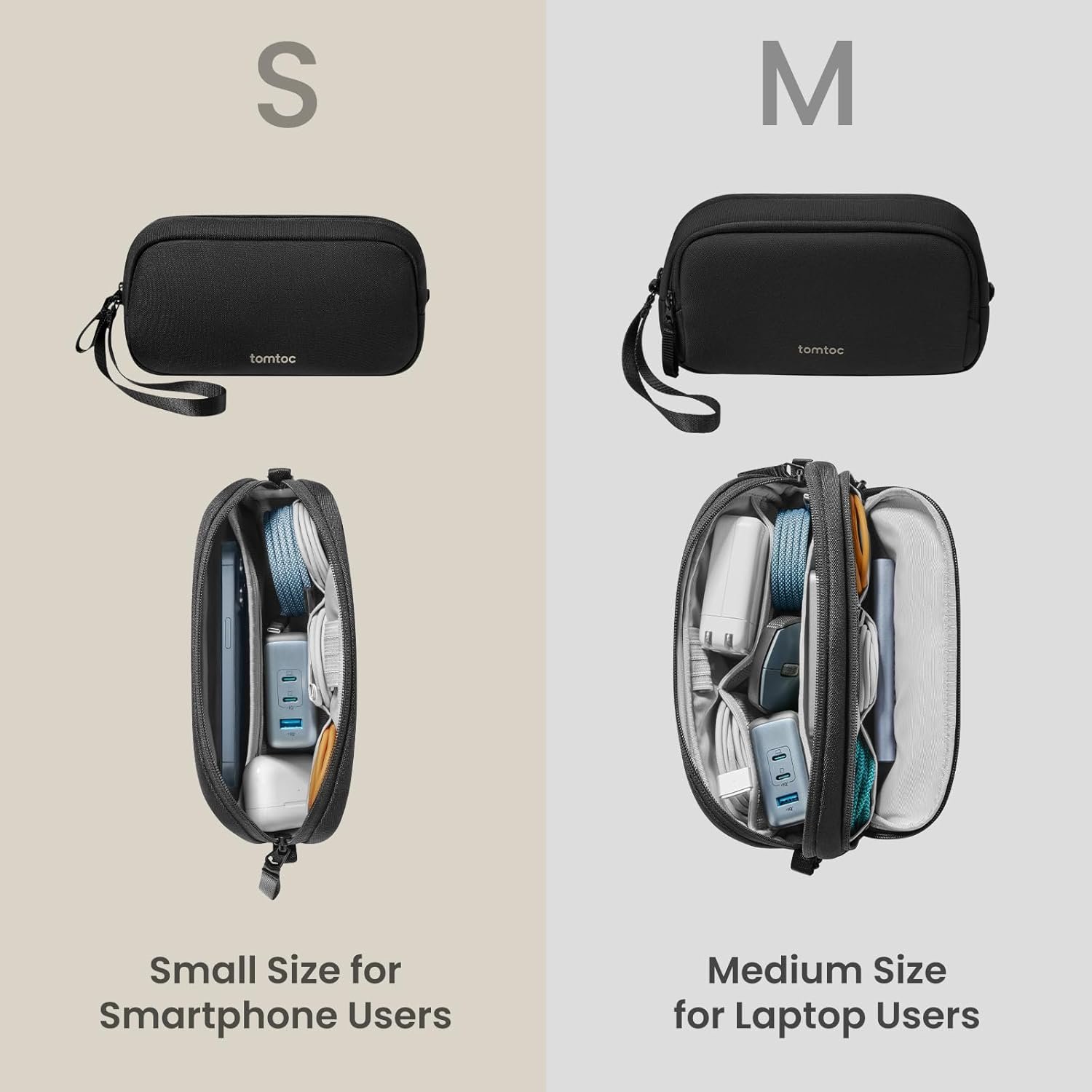 tomtoc Cable Organiser Bag Travel Pouch Water Resistant Accessory Bag Cord Organiser for Essentials, Tech Pouch Accessories Carry Storage for Power Bank, Charger, Airpods, USB, Pocket 3, Daily Items
