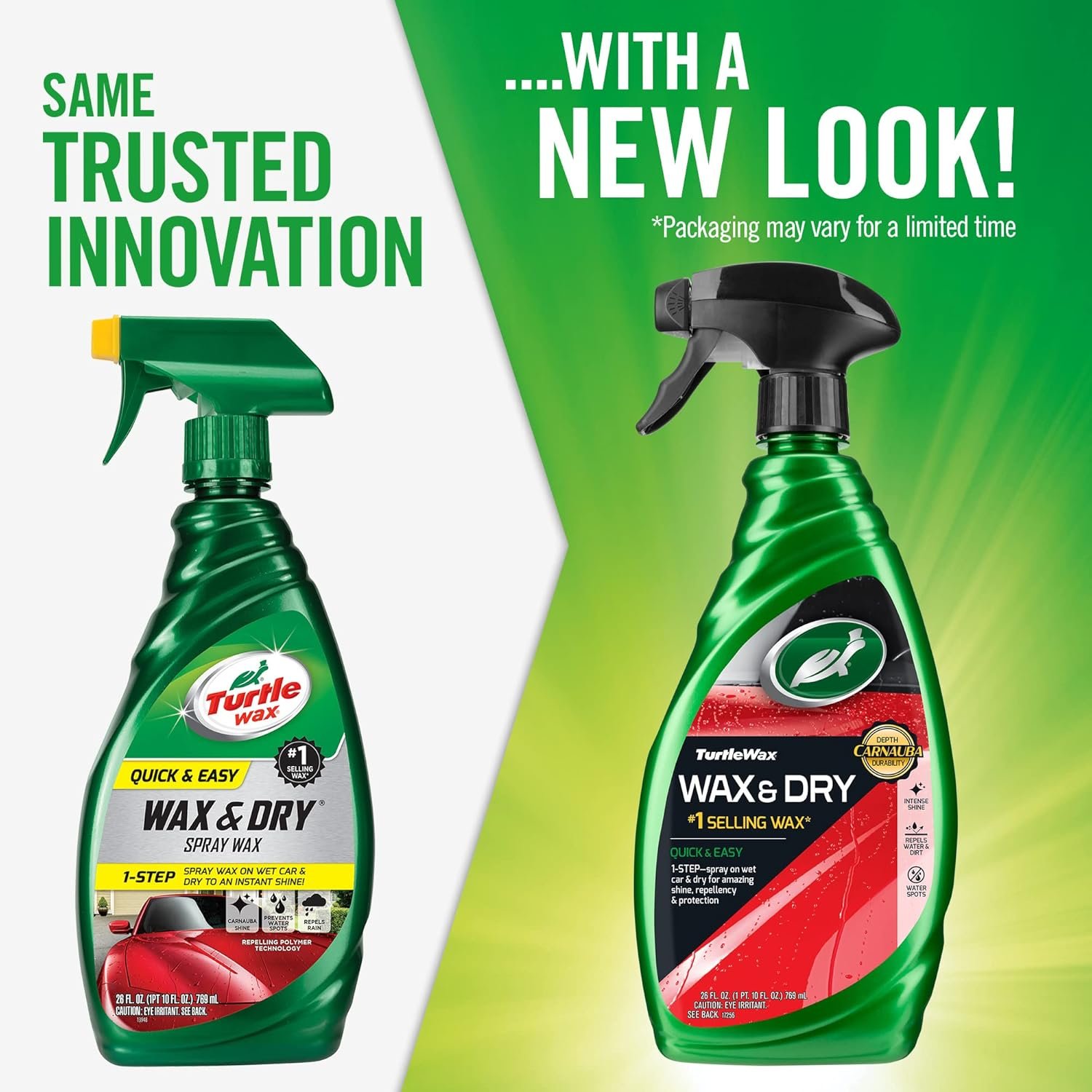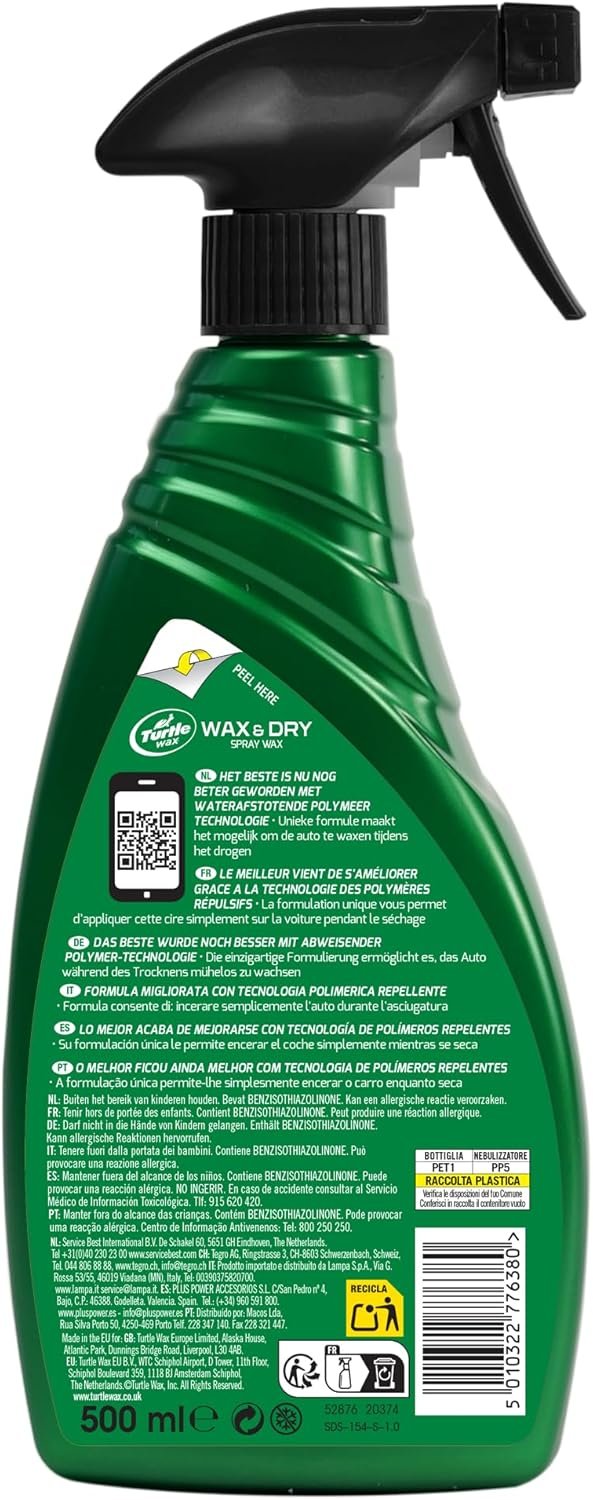 Turtle Wax 51800 Wax and Dry Car Spray Wax – 500ml, Easy One-Step Shine & Protection, Carnauba & Polymer Formula, Water Repellent, Streak-Free, High-Gloss Finish