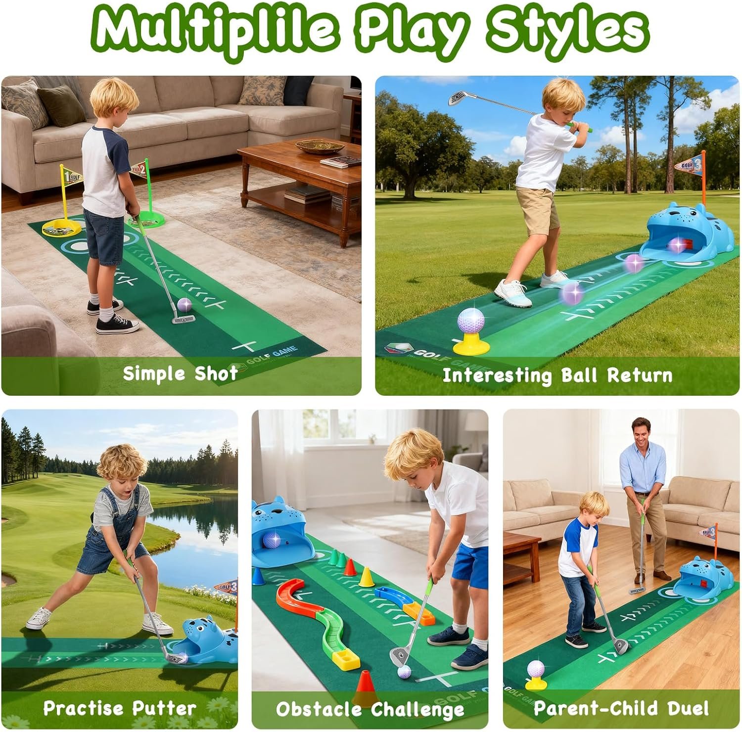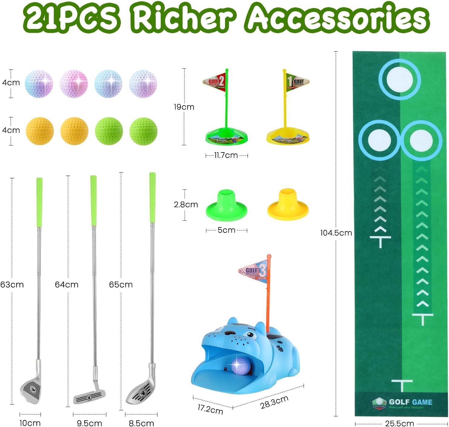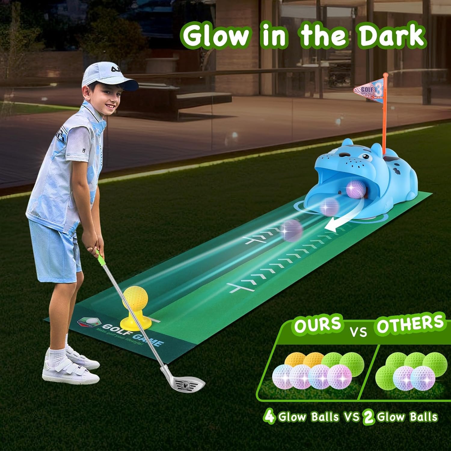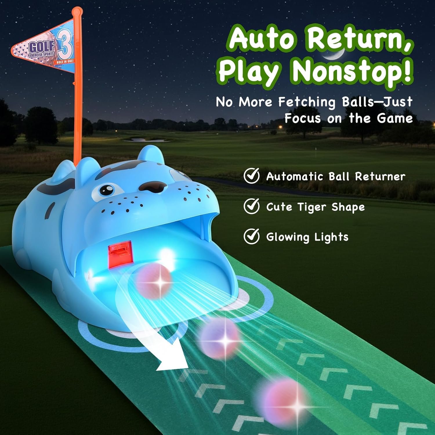 Upgraded Kids Toy Golf Set with Tiger Automatic Golf Returner, 4 Led Glowing Balls, 3 Durable Clubs for 3-7 Toddler Mini Golf Games, Indoor Outdoor Sports Toys for Boys Girls