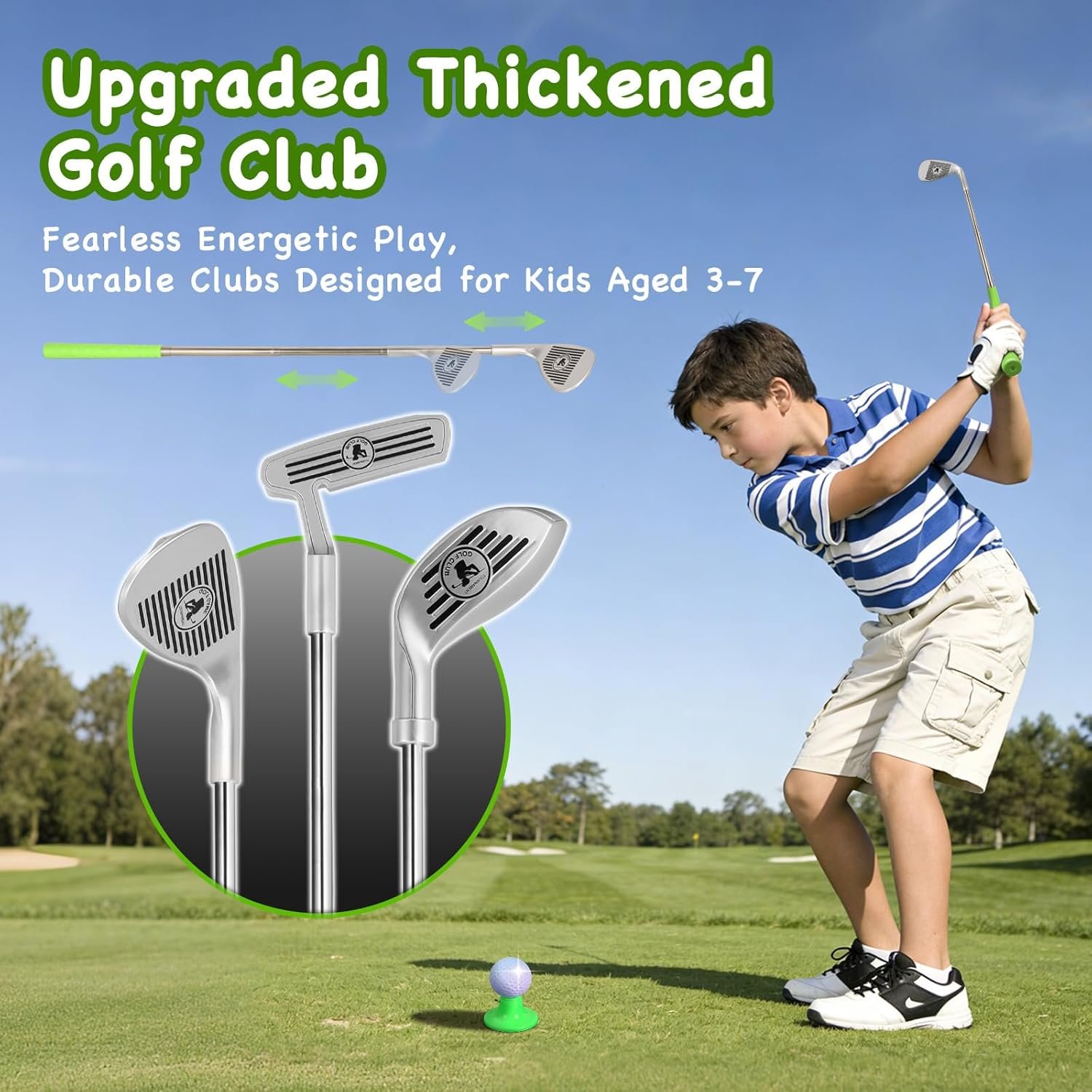 - Includes 3 durable clubs