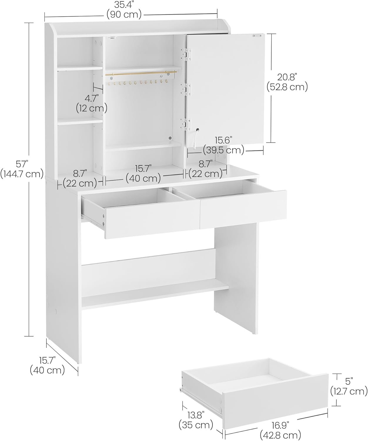 What are the dimensions of the VASAGLE KAILYN Dressing Table?