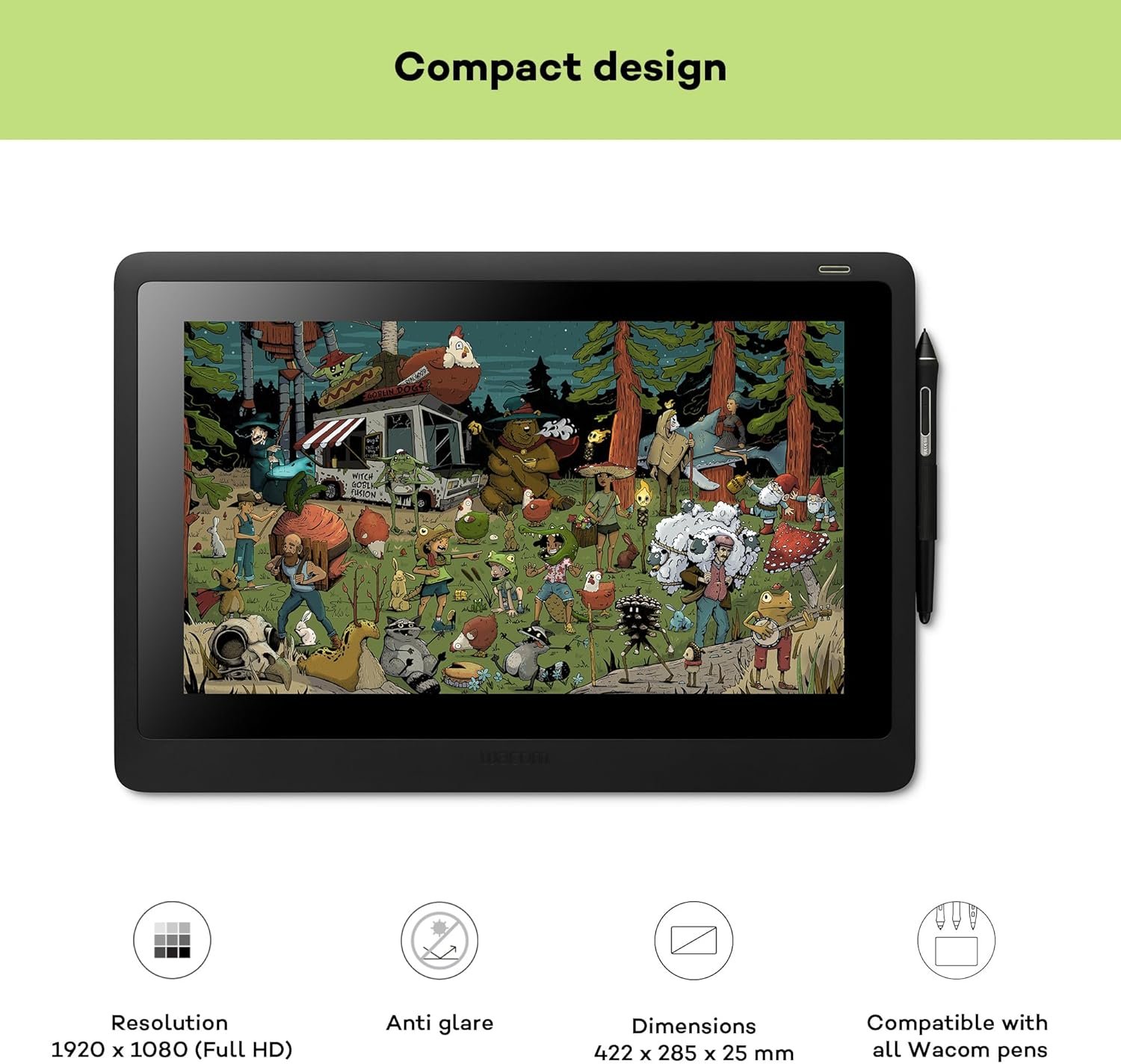 Wacom Cintiq 16 Creative Pen Display for On Screen Sketching, Illustrating and Drawing with 1920 x 1080 Full HD Display, Vibrant Color and Unbelievable Pen Precision, Compatible with Windows and Mac