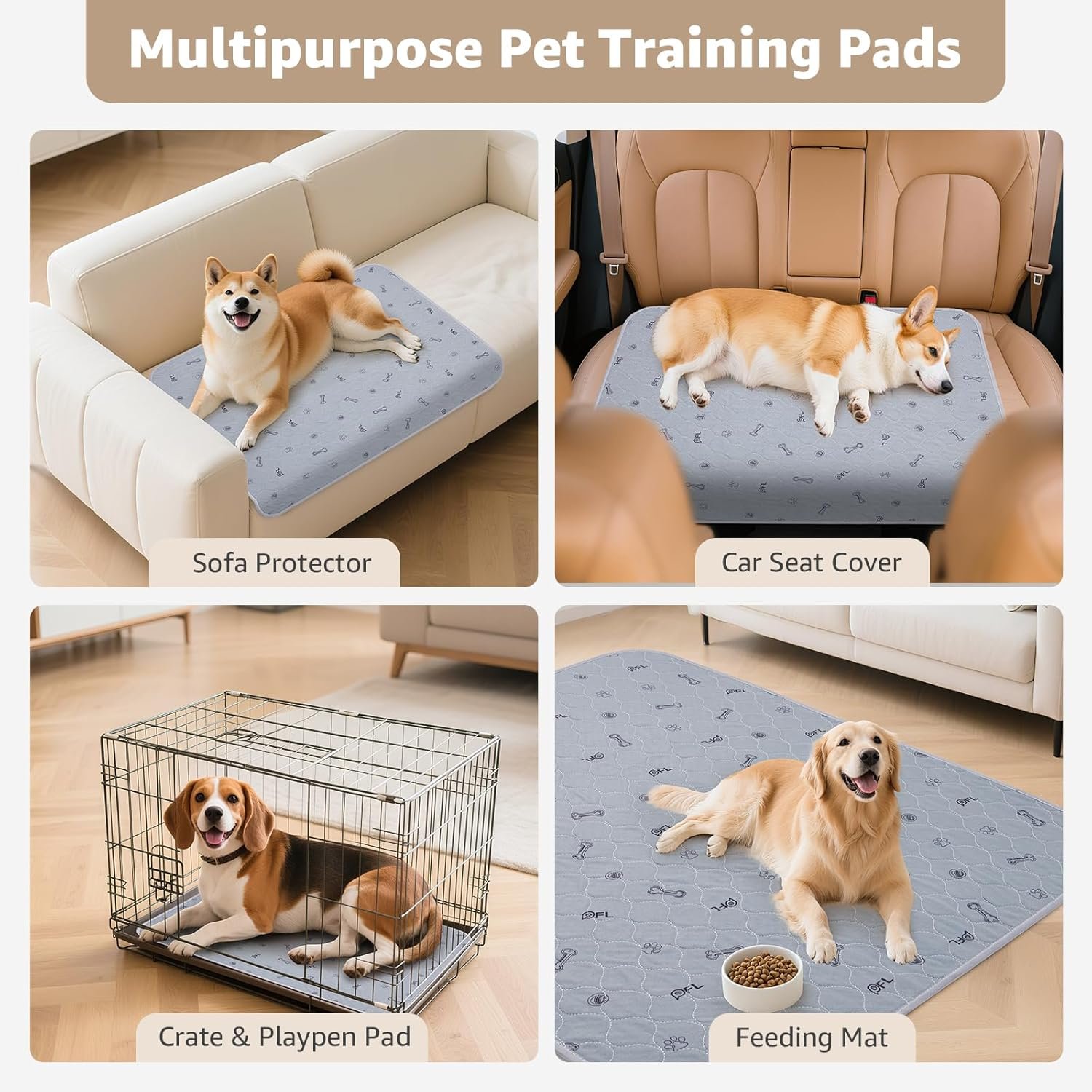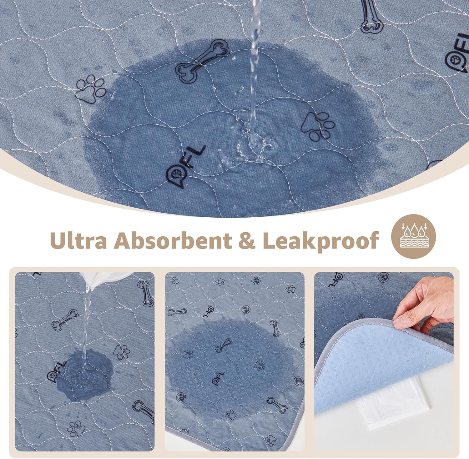 Washable Pee Pads for Dogs, 2Pack Puppy Pads Washable,Absorbent Reusable Whelping Pads Non-Slip Dog Mats with Bone Print for Floor Protector, Couch Cover, Crate, Potty Training -122x122CM