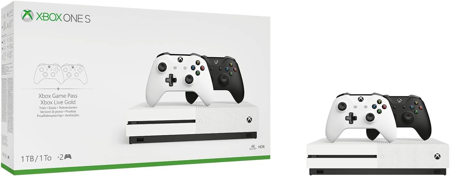 The bundle includes an Xbox One S console with 1TB of storage and two controllers.