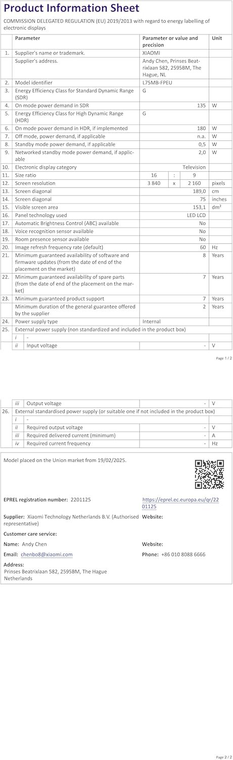 The XIAOMI TV F Pro 75 is a feature-rich smart TV designed to enhance your viewing experience. With a stunning 75-inch 4K UHD QLED display, it offers vibrant colors and sharp images. The TV supports HDR10+ for improved contrast and brightness, making it ideal for movies and gaming. Key features include: