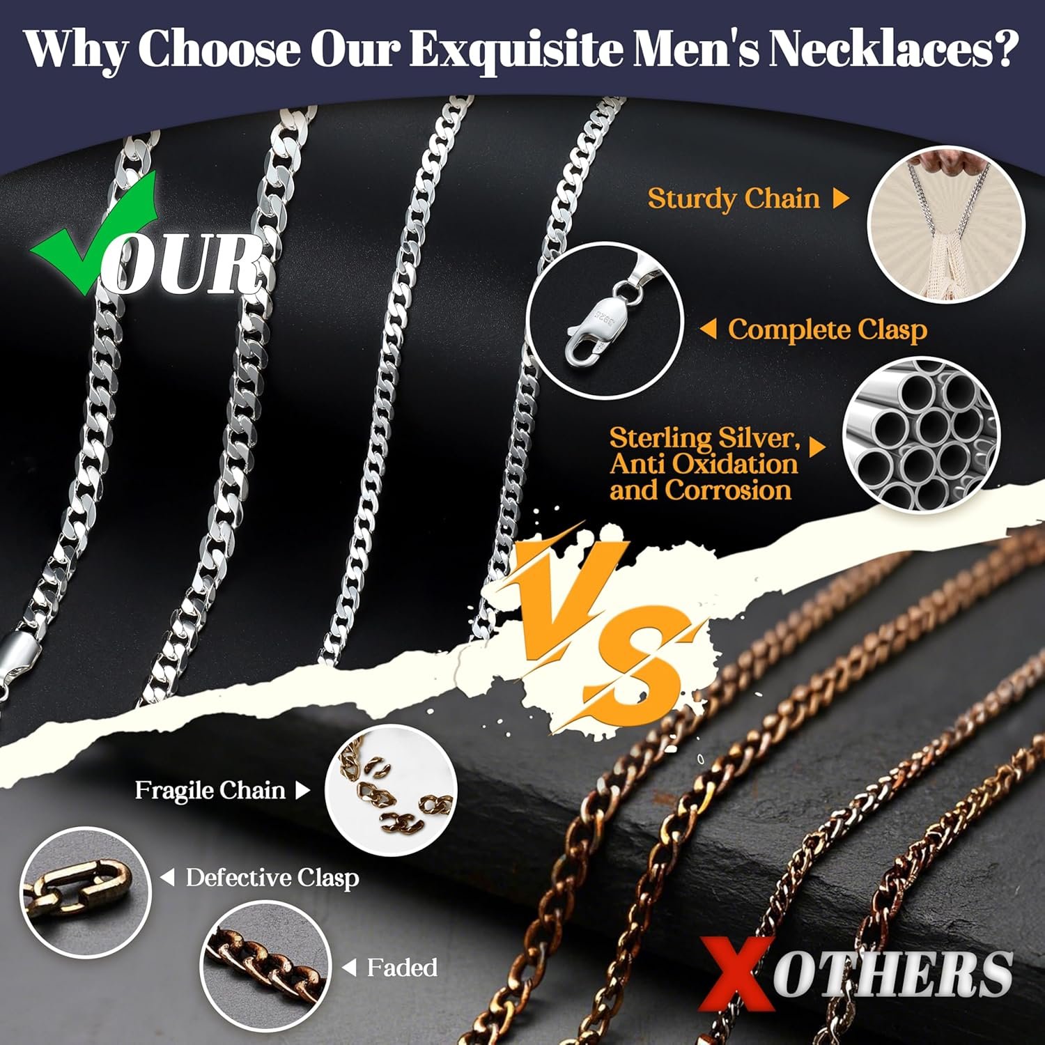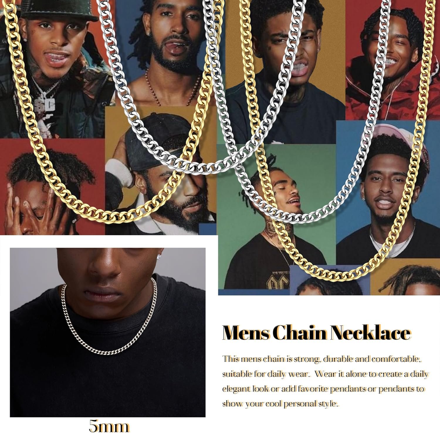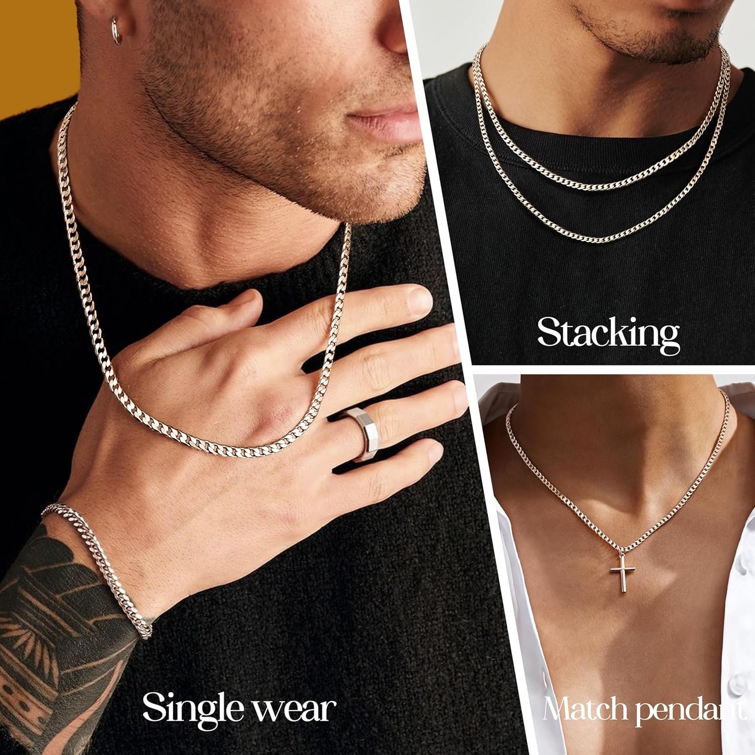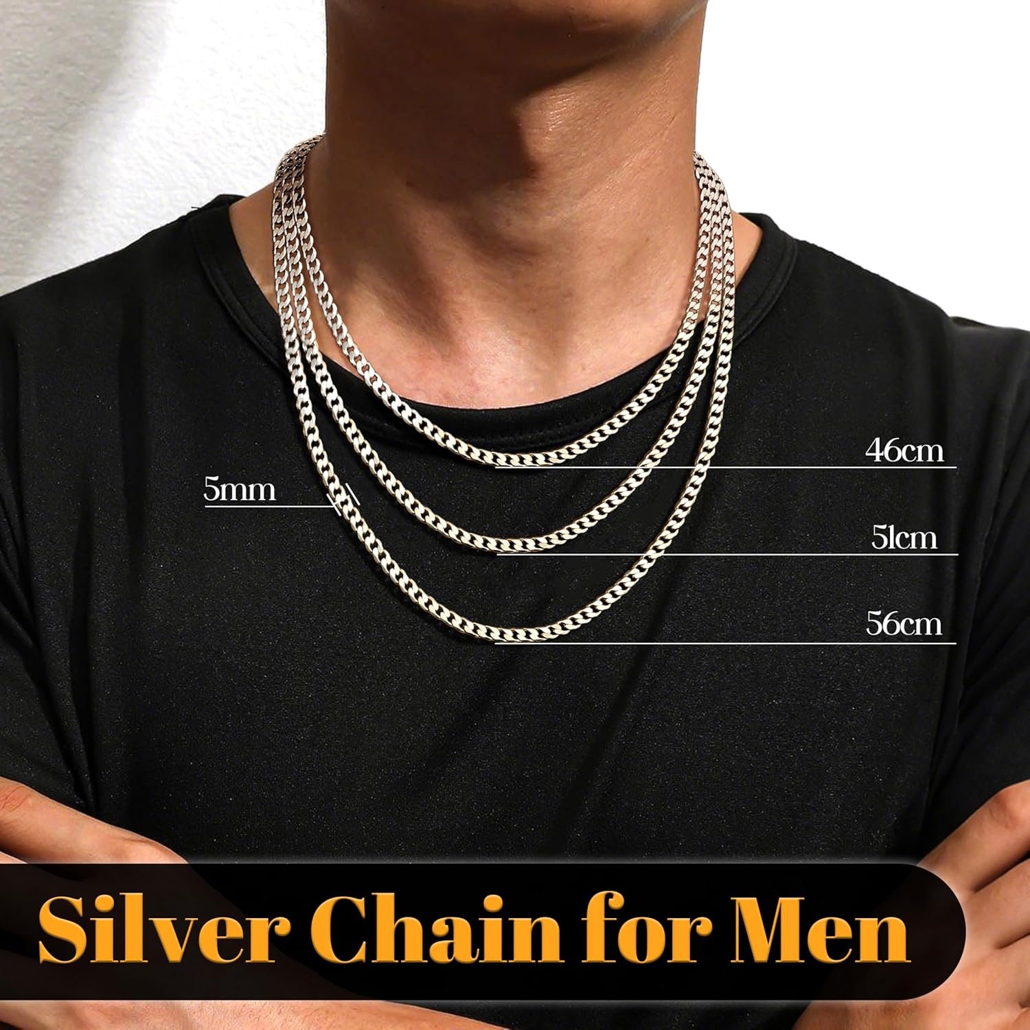 The YADOCA 925 Sterling Silver Chain is a stylish accessory designed for men. Crafted from hypoallergenic materials, it ensures comfort for those with sensitive skin. This chain is available in three thicknesses: 3mm and 5mm, making it versatile for various styles. The lengths of 18, 20, and 22 inches provide options for different preferences.